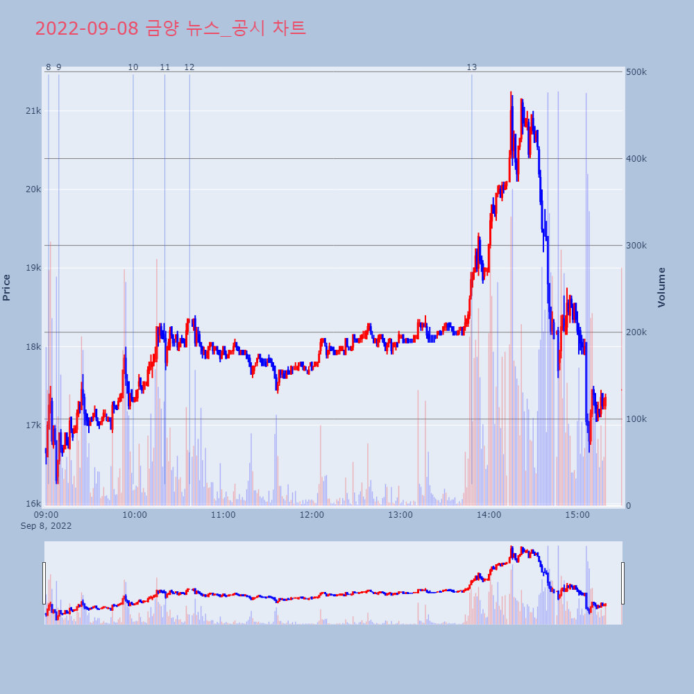 | 6 | 금양, +12.46% VI 발동금양이 VI가 발동했다. 전일 대비 12.46% 상승한 | 조선경제 | 금양 | 2022-09-07 15:18:56 |