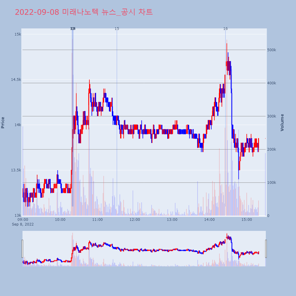 | 14 | '미래나노텍' 52주 신고가 경신, 단기·중기 이평선 정배열로 상승세◆ 차트 분석- 단기·중기 이평선 정배열로 상승세 | 한경/증권 | 미래나노텍 | 2022-09-08 10:21:10 |