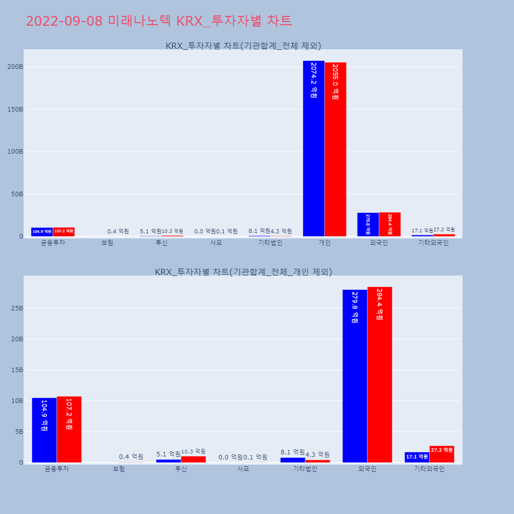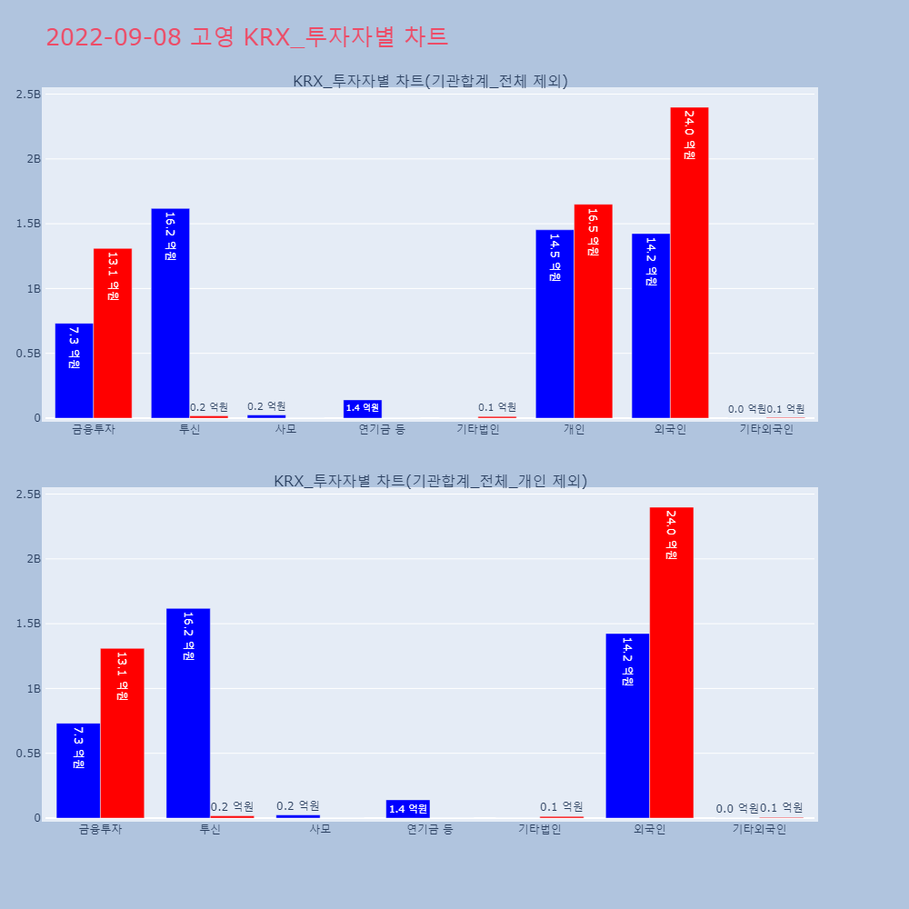 | 투자기관 | 거래량_매도 | 거래량_매수 | 거래량_순매수 | 거래대금_매도 | 거래대금_매수 | 거래대금_순매수 |