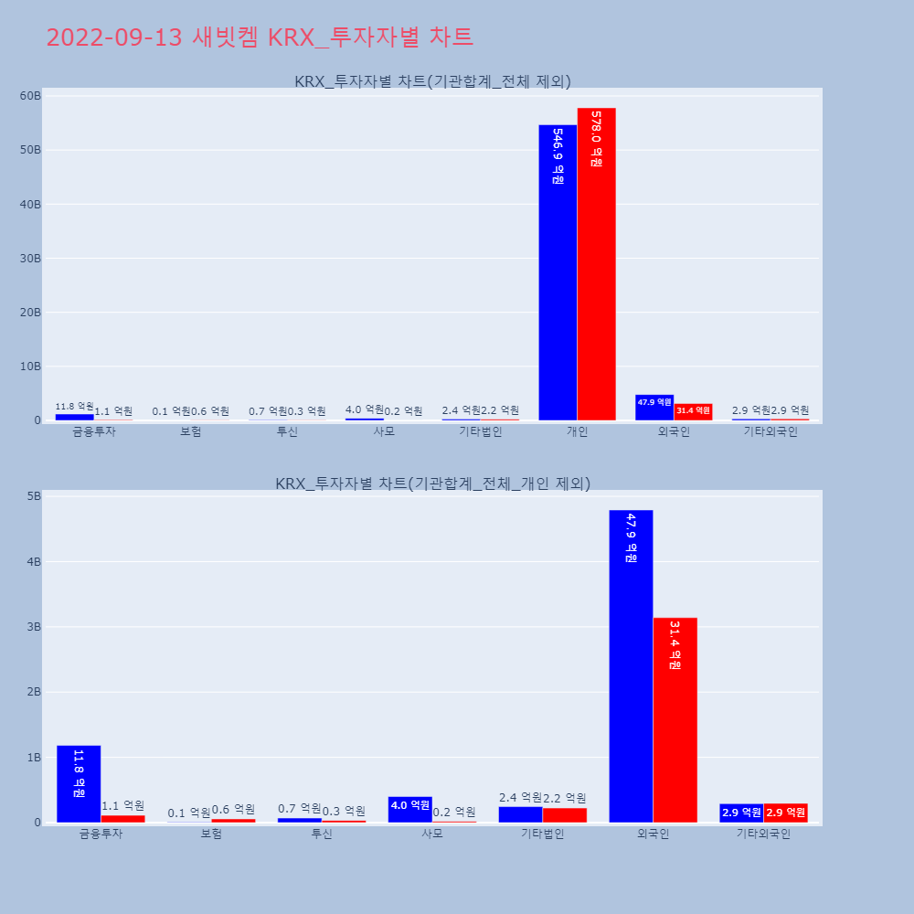 | 투자기관 | 거래량_매도 | 거래량_매수 | 거래량_순매수 | 거래대금_매도 | 거래대금_매수 | 거래대금_순매수 |