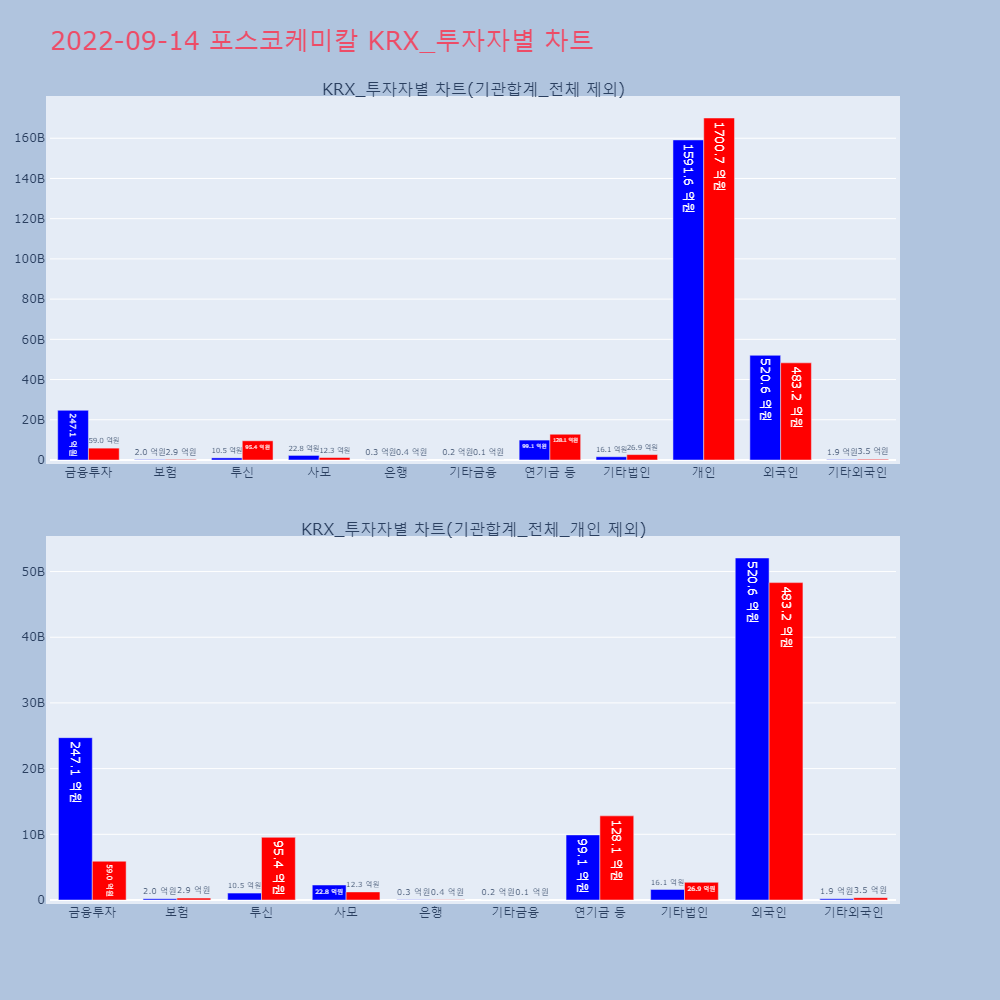| 투자기관 | 거래량_매도 | 거래량_매수 | 거래량_순매수 | 거래대금_매도 | 거래대금_매수 | 거래대금_순매수 |