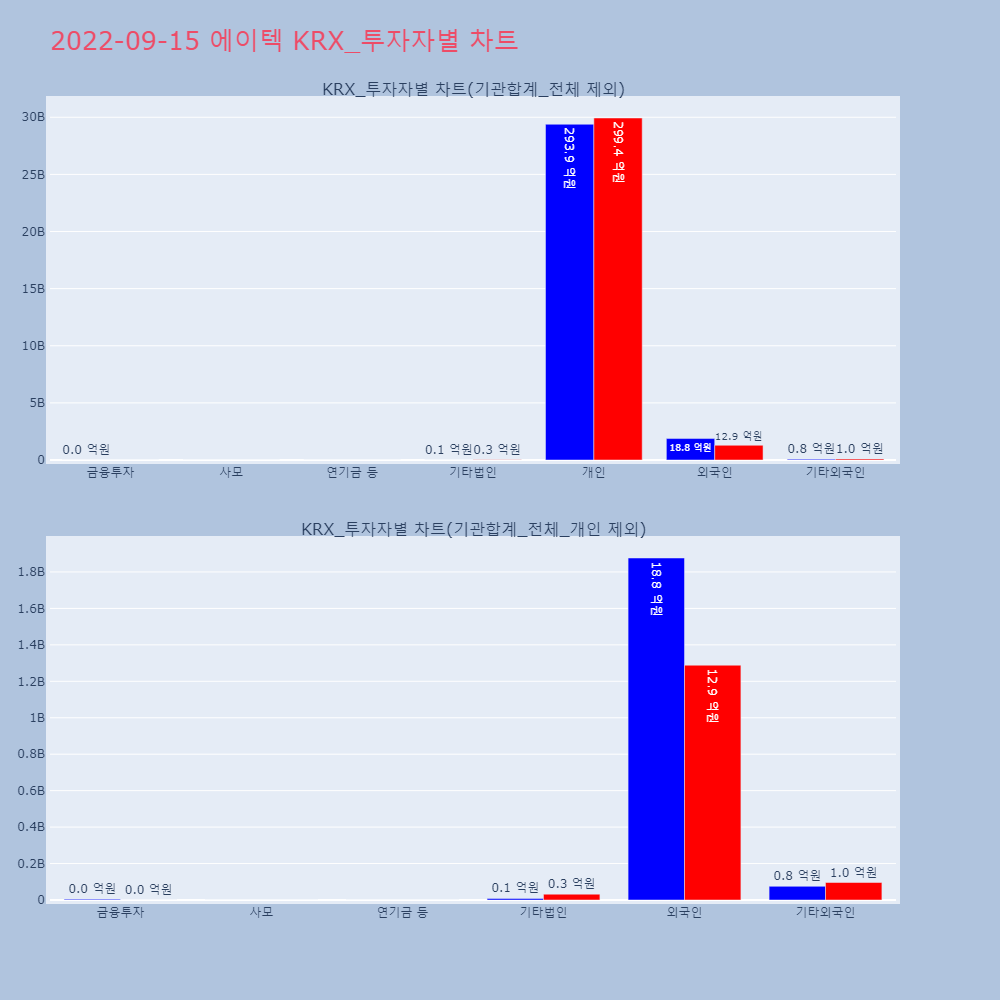 | 투자기관 | 거래량_매도 | 거래량_매수 | 거래량_순매수 | 거래대금_매도 | 거래대금_매수 | 거래대금_순매수 |