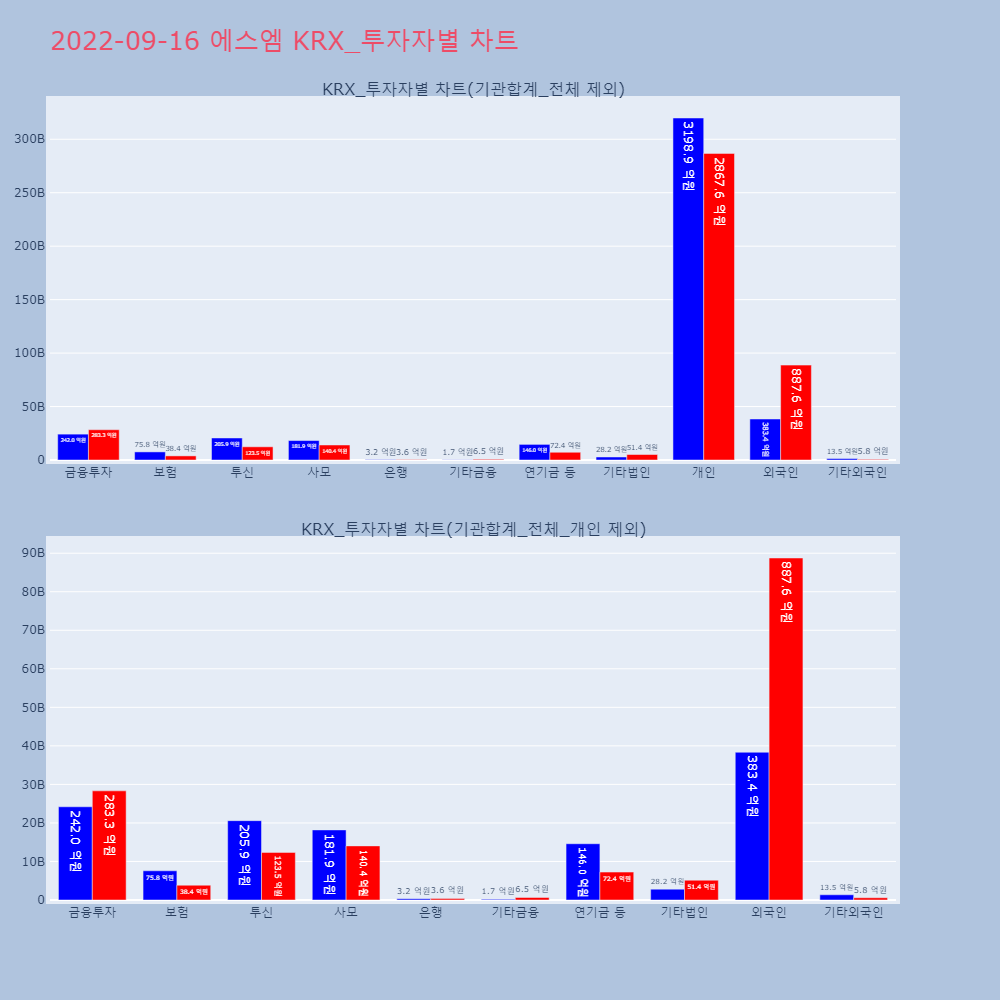 | 투자기관 | 거래량_매도 | 거래량_매수 | 거래량_순매수 | 거래대금_매도 | 거래대금_매수 | 거래대금_순매수 |