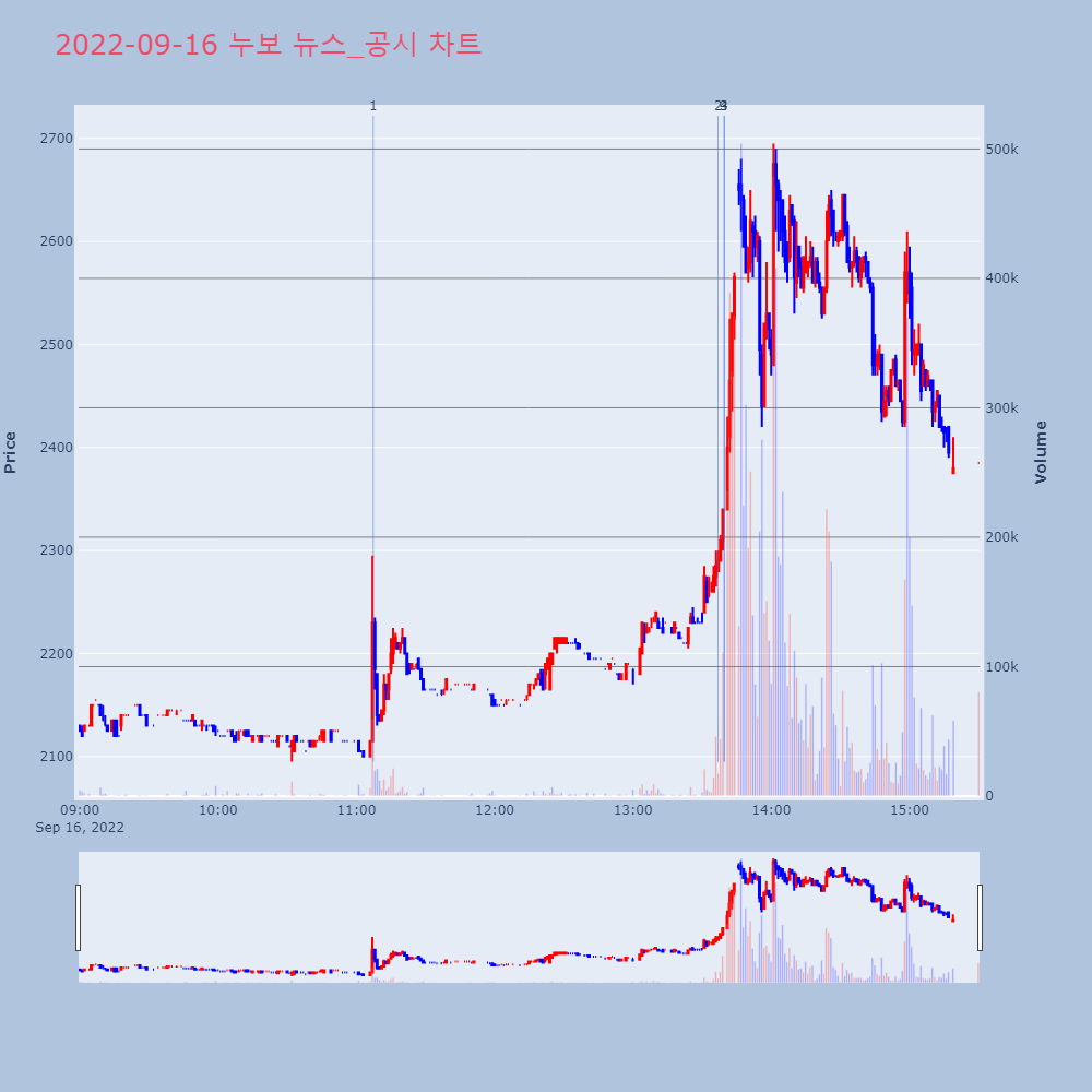 | 3 | 누보, +8.33% VI 발동누보가 VI가 발동했다. 전일 대비 8.33% 상승한 | 조선경제 | 누보 | 2022-09-16 13:39:33 |