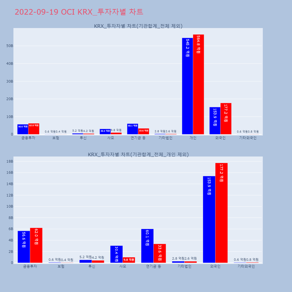 | 투자기관 | 거래량_매도 | 거래량_매수 | 거래량_순매수 | 거래대금_매도 | 거래대금_매수 | 거래대금_순매수 |