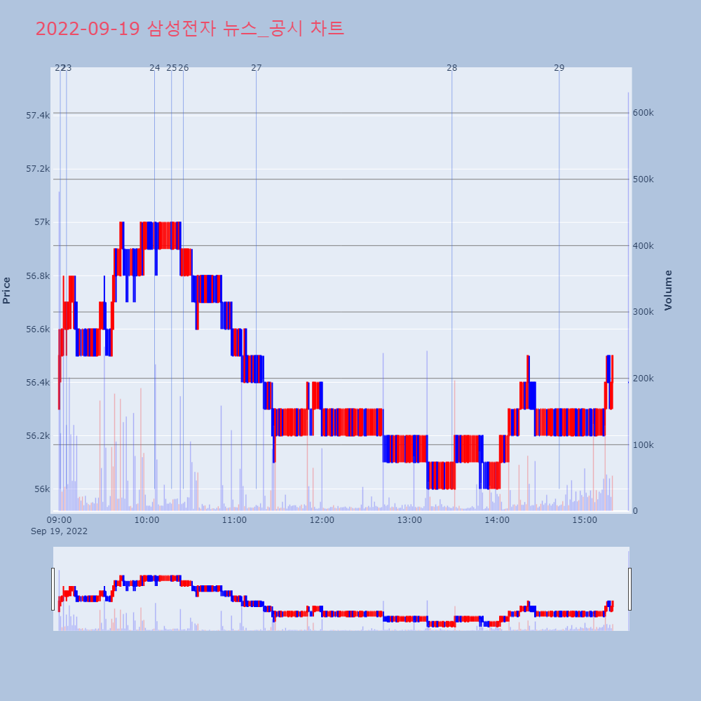 | 25 | [장중수급포착] 삼성전자, 외국인/기관 동시 순매수… 주가 +1.42% [서울=뉴스핌] 로보뉴스 = 19일 10시 15분 현재 | 뉴스핌 | 삼성전자 | 2022-09-19 10:17:01 |