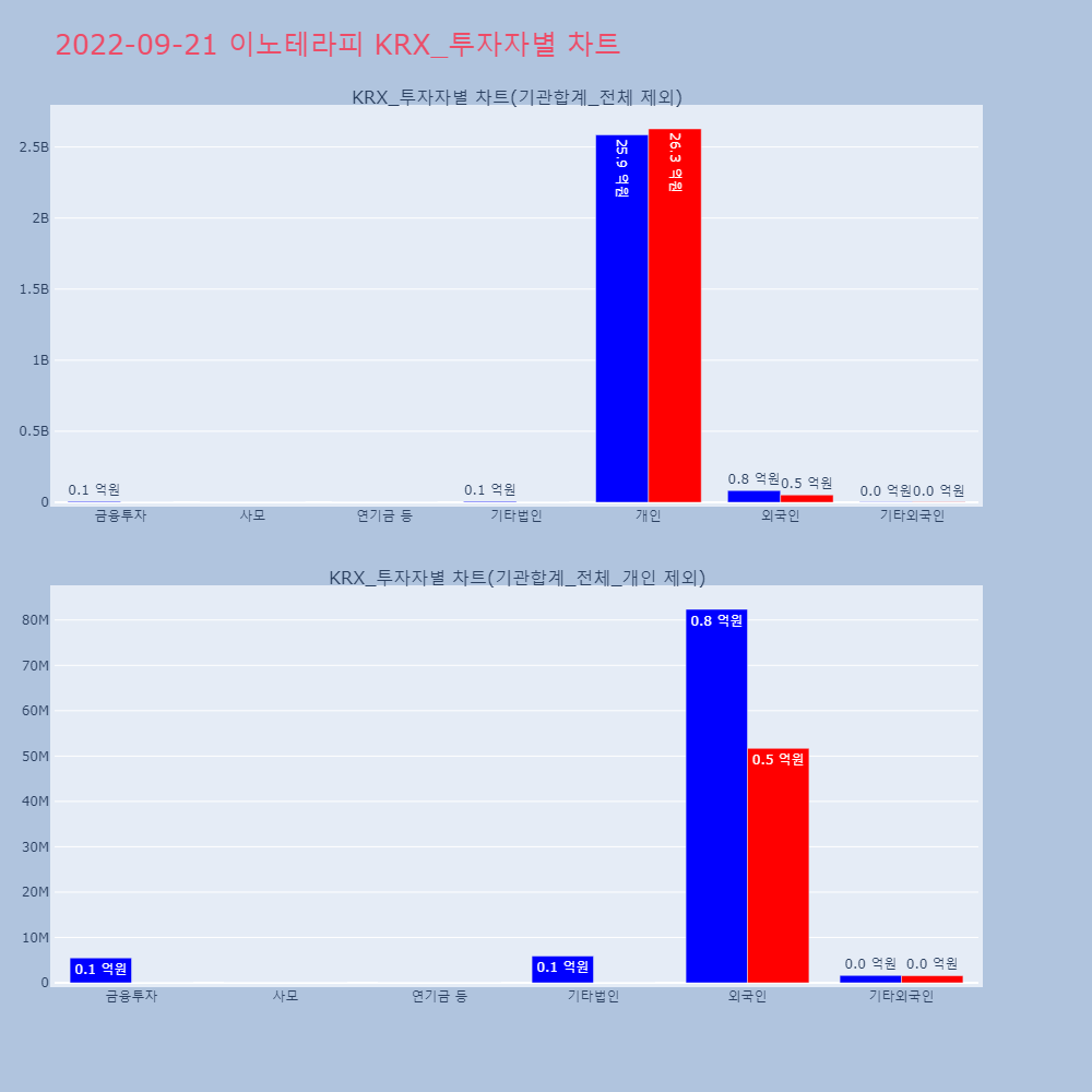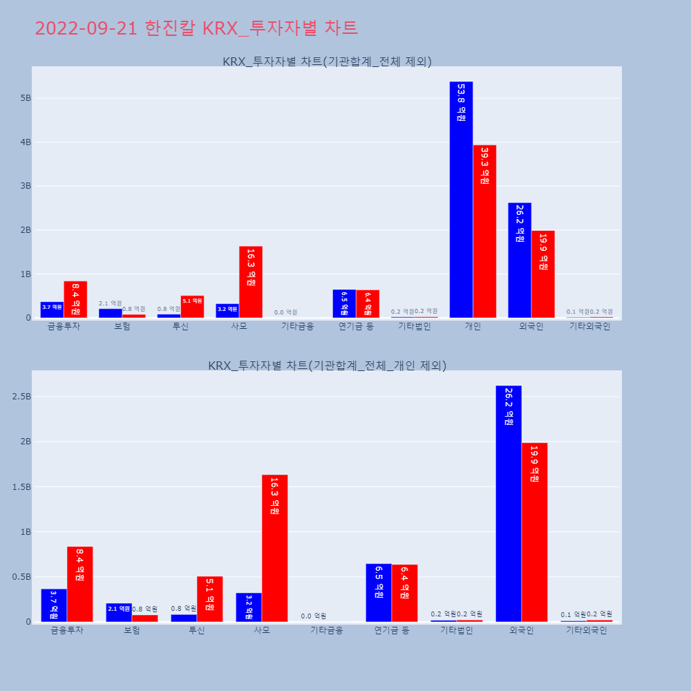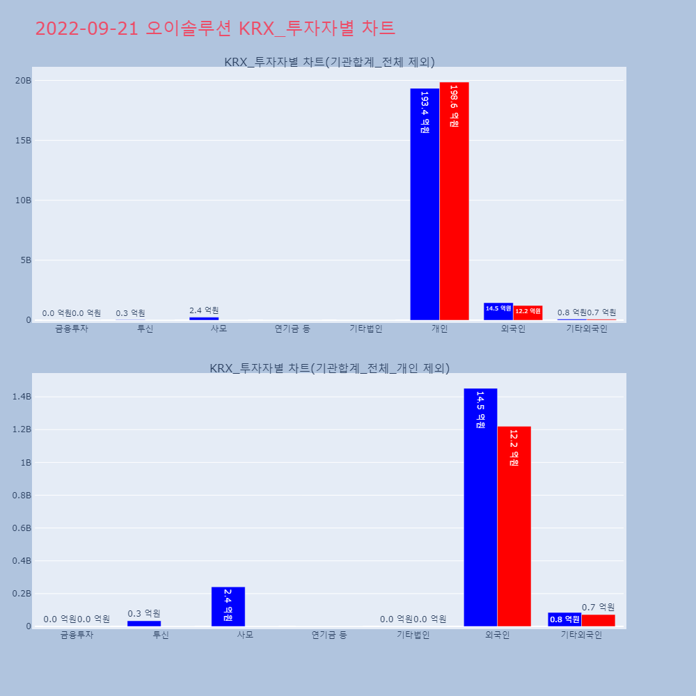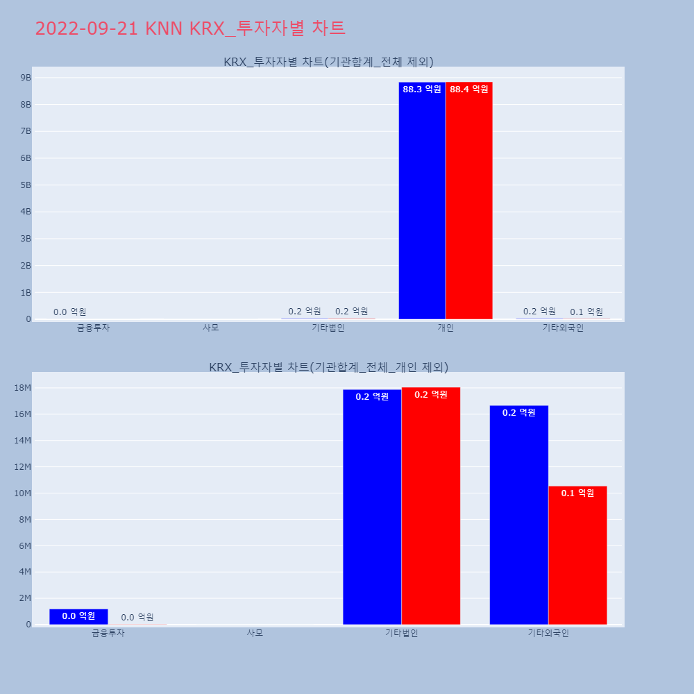 | 투자기관 | 거래량_매도 | 거래량_매수 | 거래량_순매수 | 거래대금_매도 | 거래대금_매수 | 거래대금_순매수 |