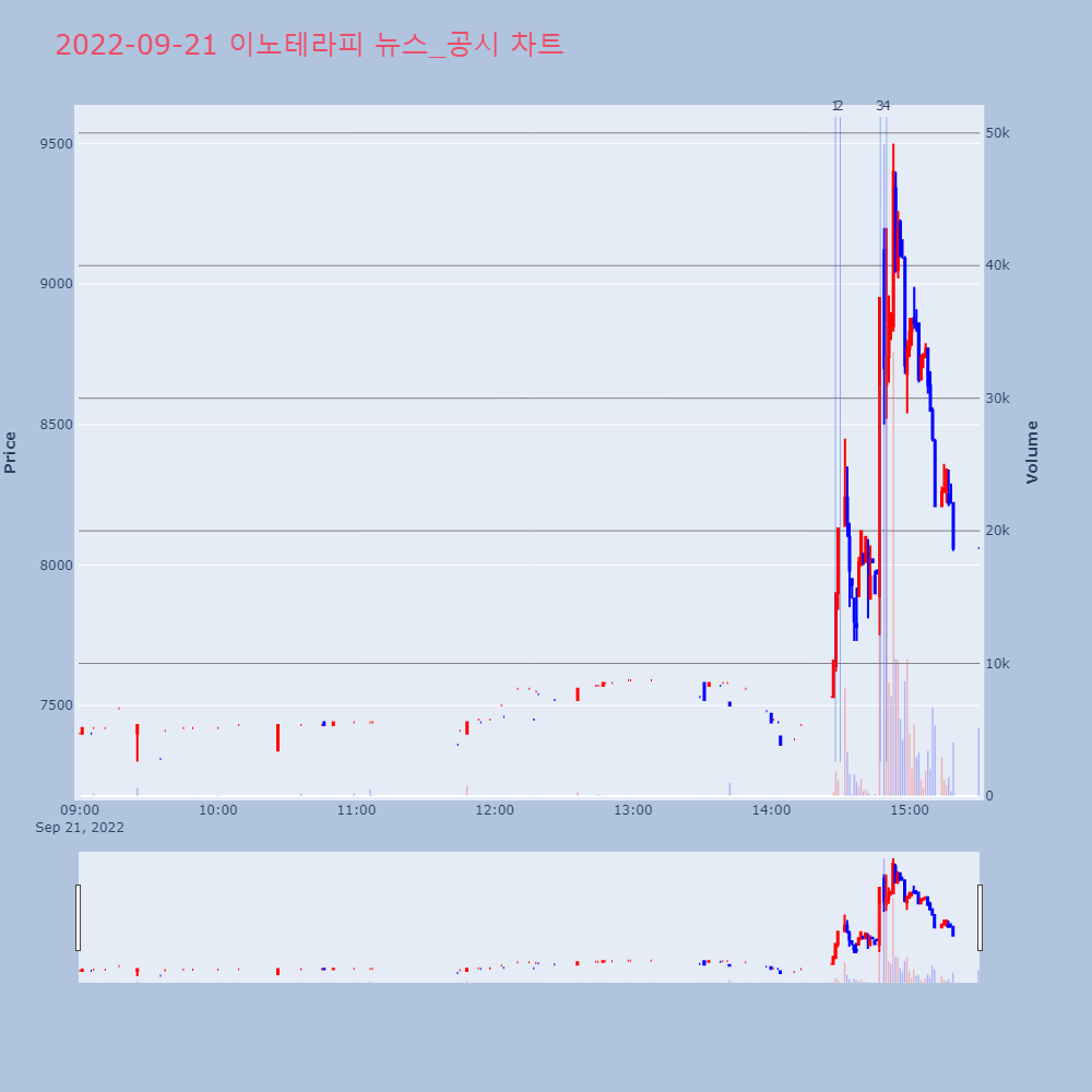 | 2 | 이노테라피, +9.86% VI 발동이노테라피가 VI가 발동했다. 전일 대비 9.86% 상 | 조선경제 | 이노테라피 | 2022-09-21 14:29:55 |