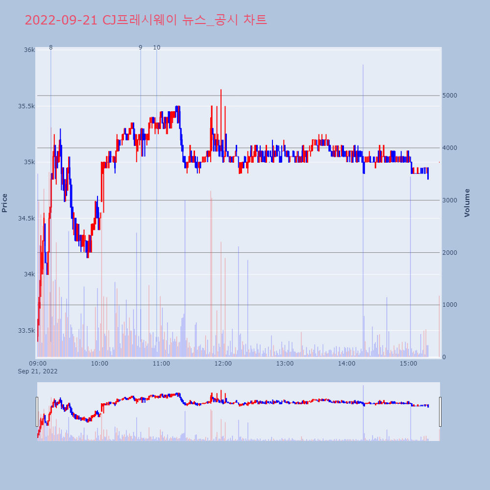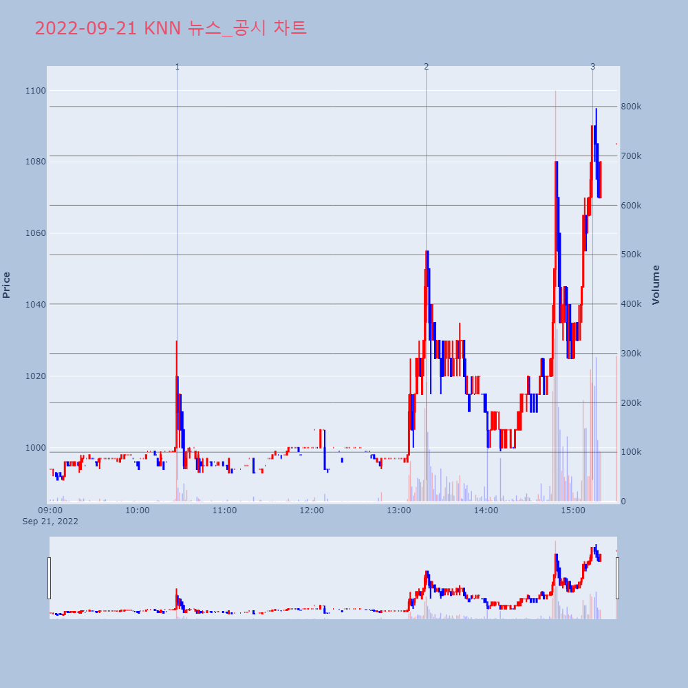 | 3 | KNN, +9.55% VI 발동KNN이 VI가 발동했다. 전일 대비 9.55% 상승한 | 조선경제 | KNN | 2022-09-21 15:13:34 |