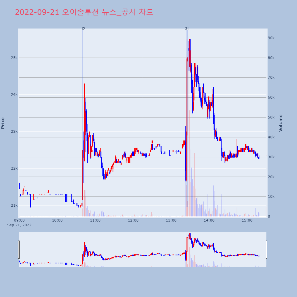 | 3 | [특징주]오이솔루션, 美마벨과 업계최초 초고속 통신 광모듈 개발성공 소식[파이낸셜뉴스]오이솔루션이 미국 반도체 업체 마벨(Ma | 파이낸셜 | 오이솔루션 | 2022-09-21 13:23:49 |