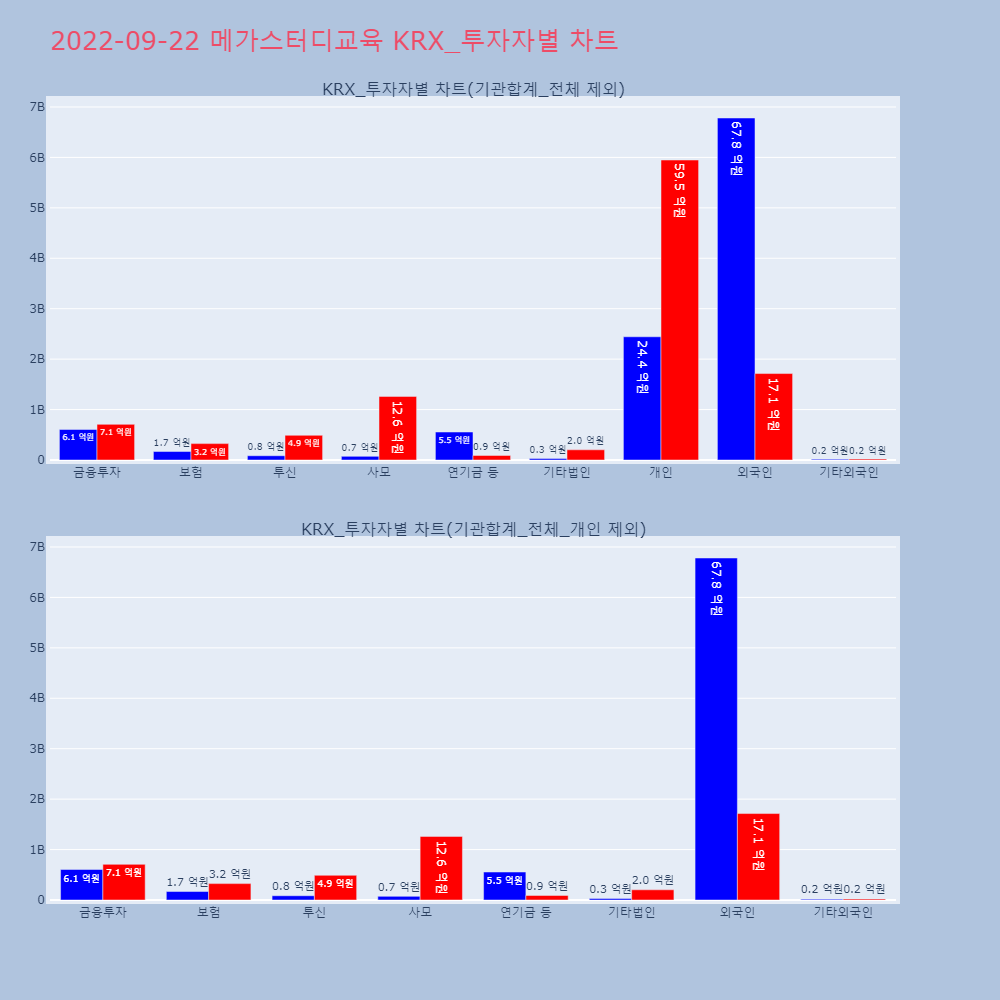 | 투자기관 | 거래량_매도 | 거래량_매수 | 거래량_순매수 | 거래대금_매도 | 거래대금_매수 | 거래대금_순매수 |