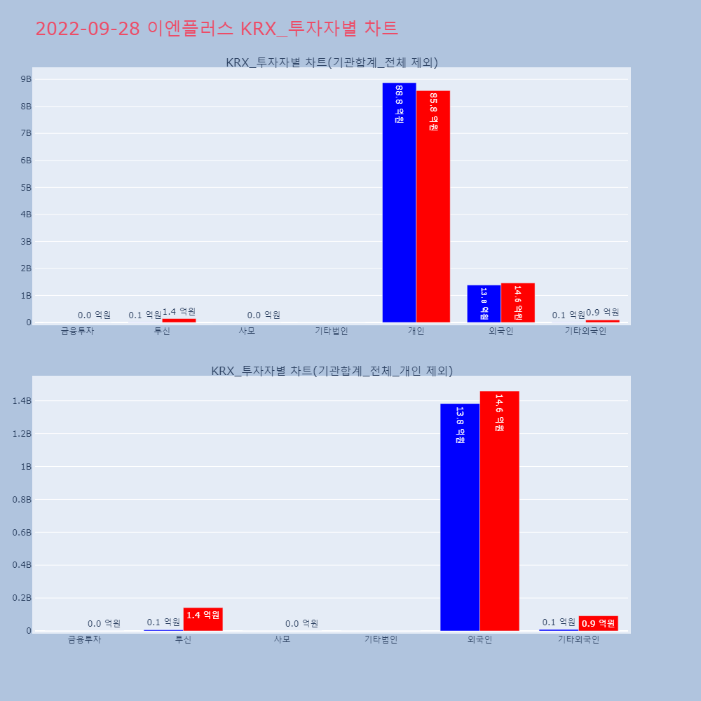 | 투자기관 | 거래량_매도 | 거래량_매수 | 거래량_순매수 | 거래대금_매도 | 거래대금_매수 | 거래대금_순매수 |