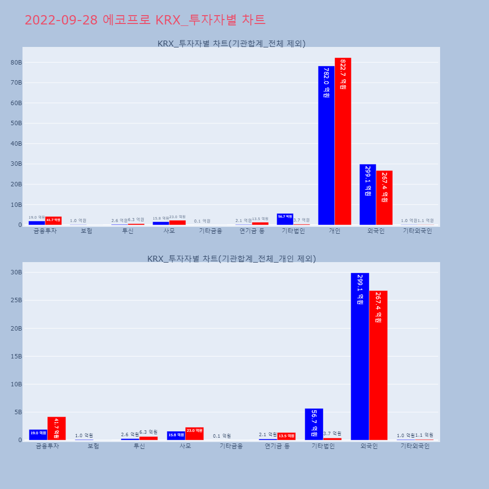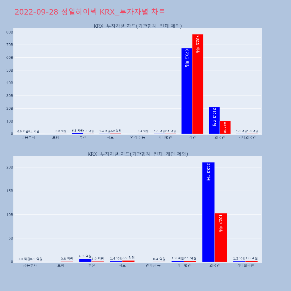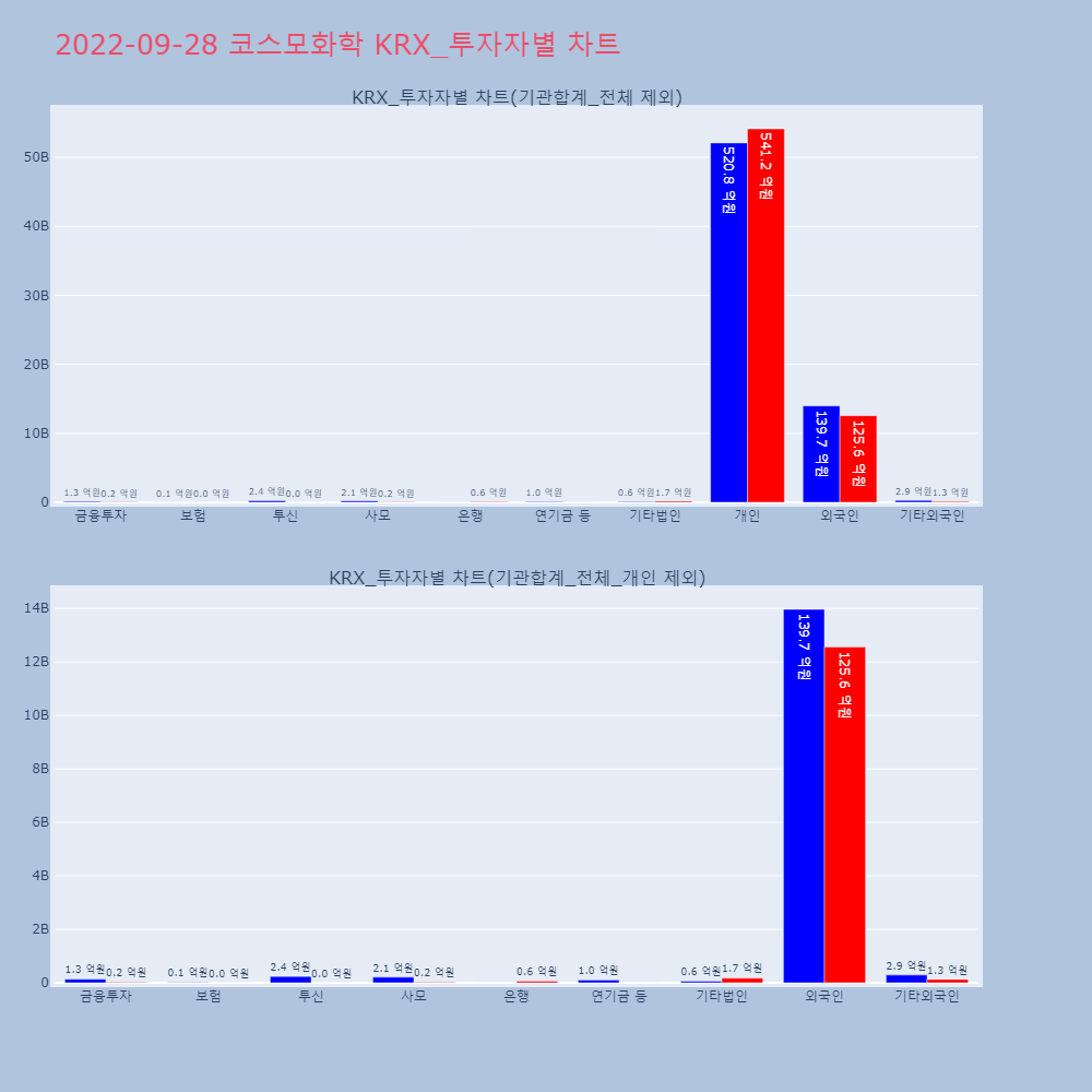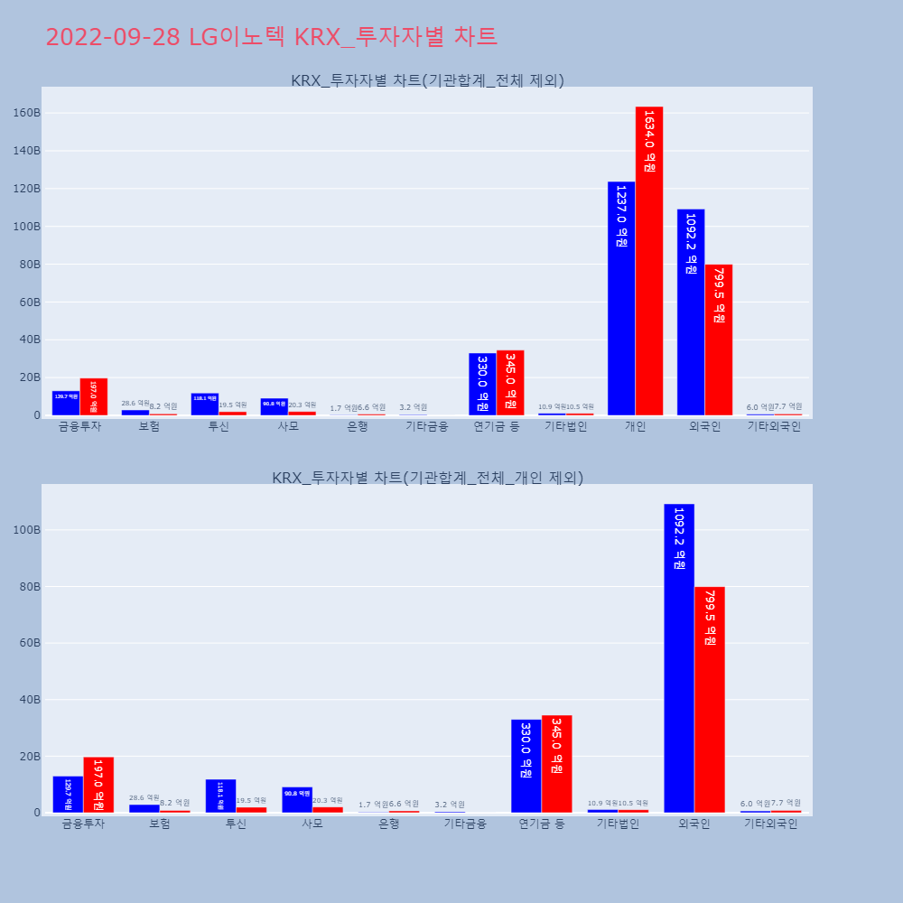 | 외국인 | 376,945 | 277,595 | -99,350 | 109,219,772,500 | 79,948,781,500 | -29,270,991,000 |