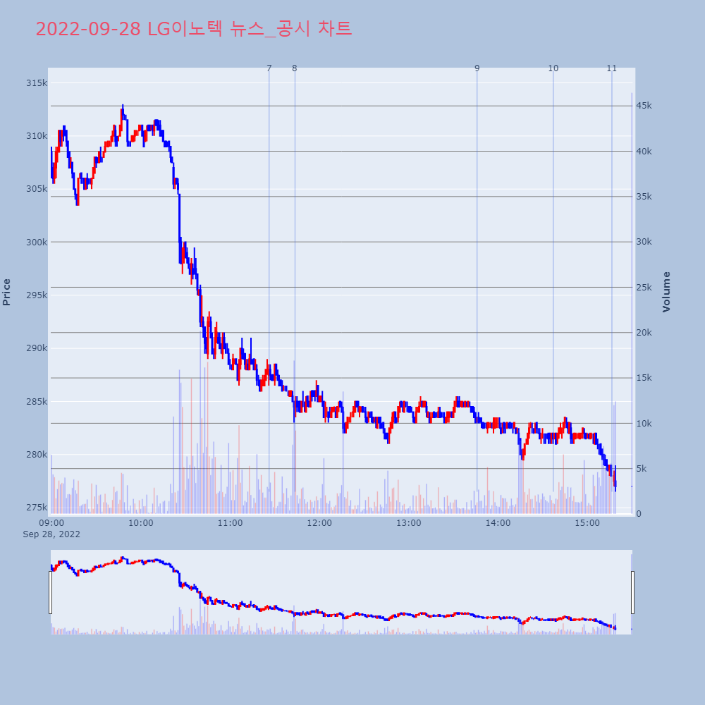 | 11 | LG이노텍, -10.18% VI 발동LG이노텍이 VI가 발동했다. 전일 대비 10.18% | 조선경제 | LG이노텍 | 2022-09-28 15:16:36 |
