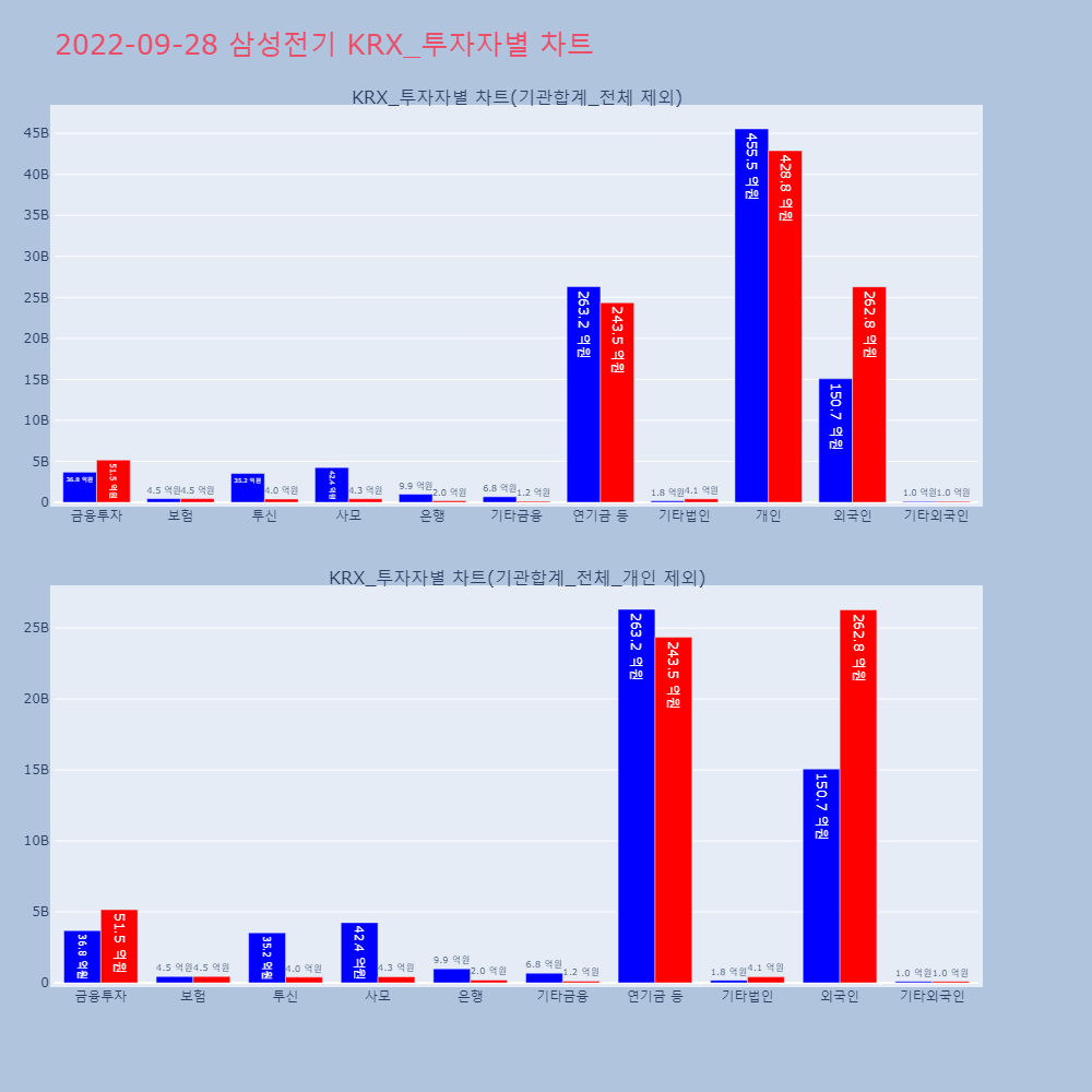 | 투자기관 | 거래량_매도 | 거래량_매수 | 거래량_순매수 | 거래대금_매도 | 거래대금_매수 | 거래대금_순매수 |