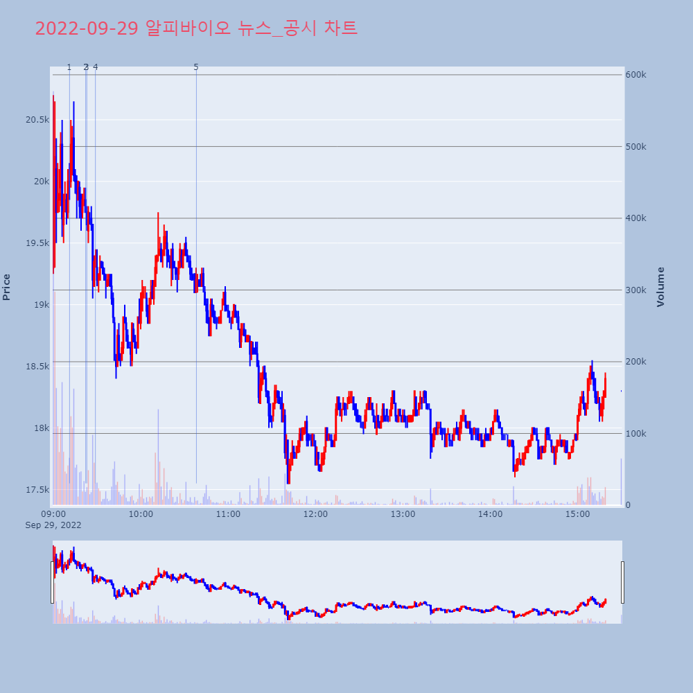 | 5 | [특징주] 알피바이오, 코스닥 상장 첫날 소폭 상승 제목 : [특징주] 알피바이오, 코스닥 상장 첫날 소폭 | 인포스탁 | 알피바이오 | 2022-09-29 10:38:13 |