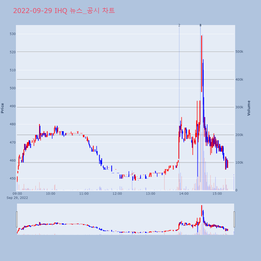 | 4 | IHQ, +10.54% VI 발동IHQ가 VI가 발동했다. 전일 대비 10.54% 상승 | 조선경제 | IHQ | 2022-09-29 14:29:54 |