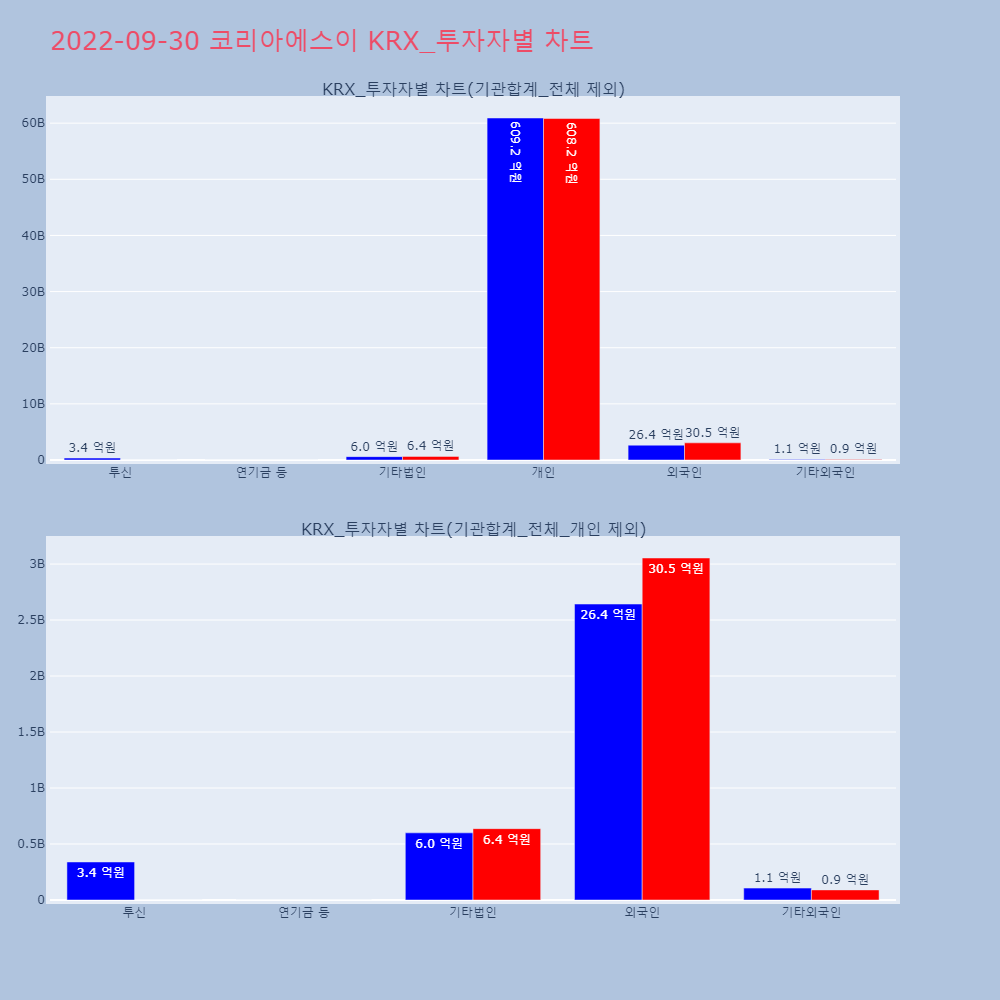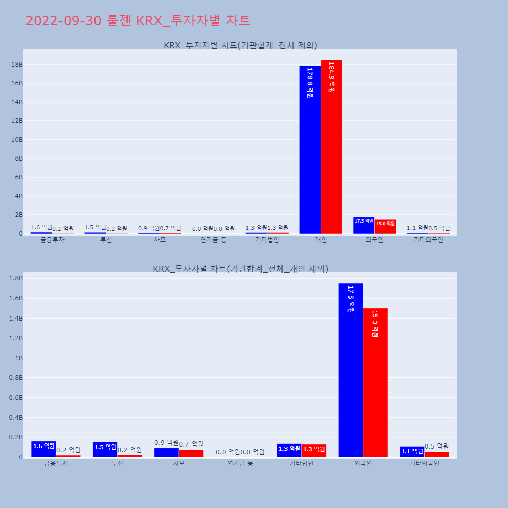 | 투자기관 | 거래량_매도 | 거래량_매수 | 거래량_순매수 | 거래대금_매도 | 거래대금_매수 | 거래대금_순매수 |