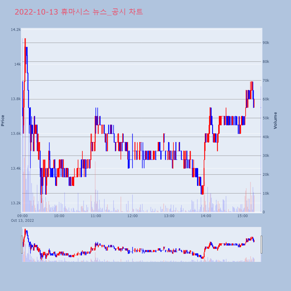 [휴마시스(205470) (+9.82%)] (종가등락률:+1.1%)