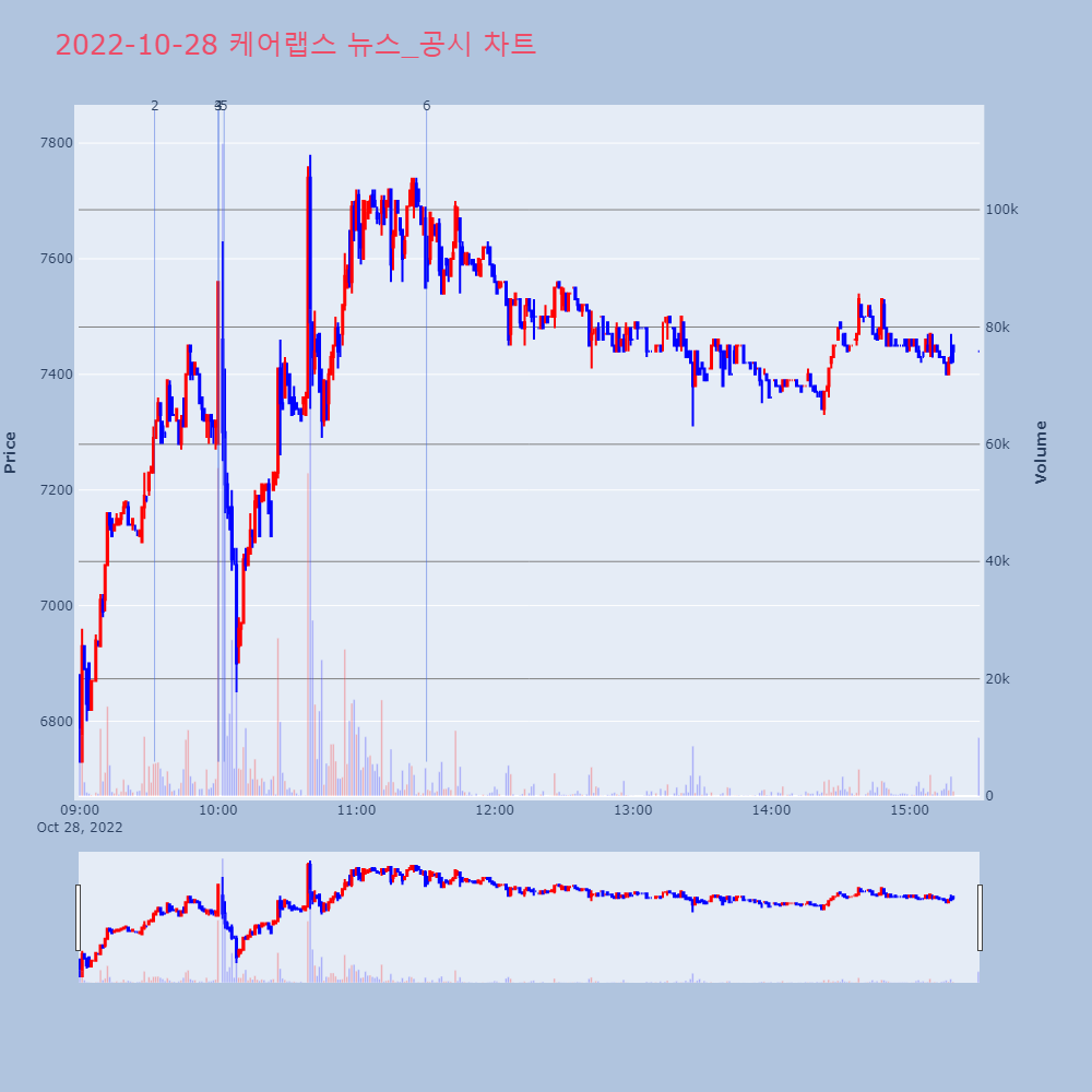 | 7 | [시간외Y] 케어랩스, 풍국주정 '상한가'[프라임경제] 재테크와 투자, 부동산 등에 대한 관심이 | 프라임경제 | 케어랩스 | 2022-10-28 18:06:27 |