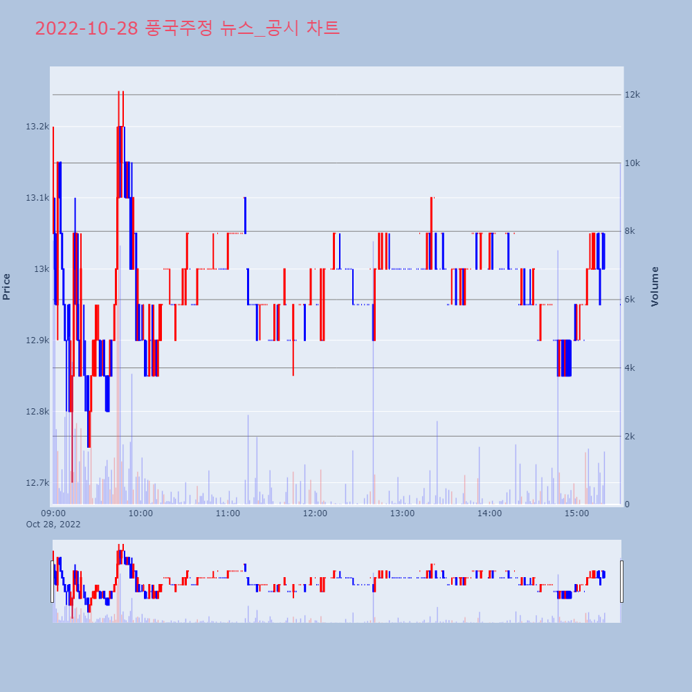 | 3 | 풍국주정, +9.82% VI 발동풍국주정이 VI가 발동했다. 전일 대비 9.82% 상승 | 조선경제 | 풍국주정 | 2022-10-27 10:30:29 |