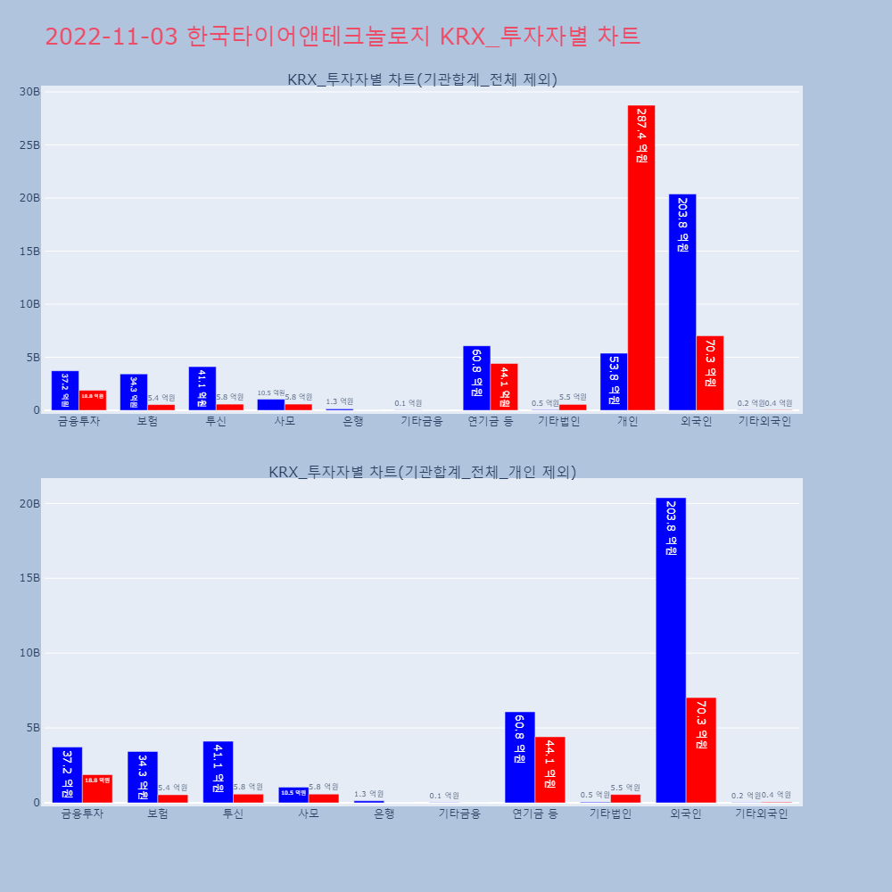 | 외국인 | 322,422 | 175,609 | -146,813 | 12,009,249,550 | 6,569,020,900 | -5,440,228,650 |