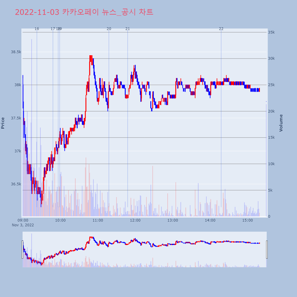 | 22 | [특징주] 카카오페이, 보호 예수 물량 해제에 2%대 하락[이투데이/문수빈 기자(bean@etoday.co.kr | 이투데이 | 카카오페이 | 2022-11-03 14:17:44 |
