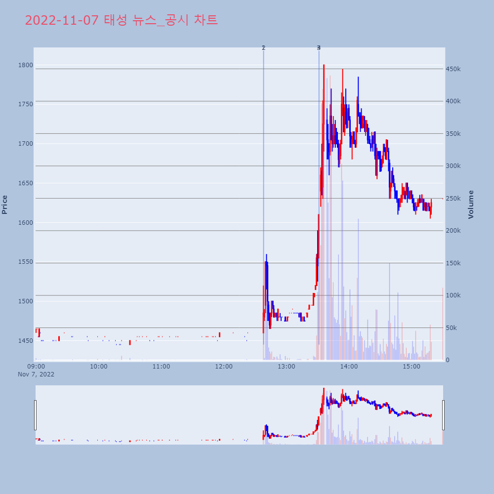 | 3 | 테스, +10.29% VI 발동테스가 VI가 발동했다. 전일 대비 10.29% 상승한 | 조선경제 | 테스 | 2022-11-07 14:55:51 |