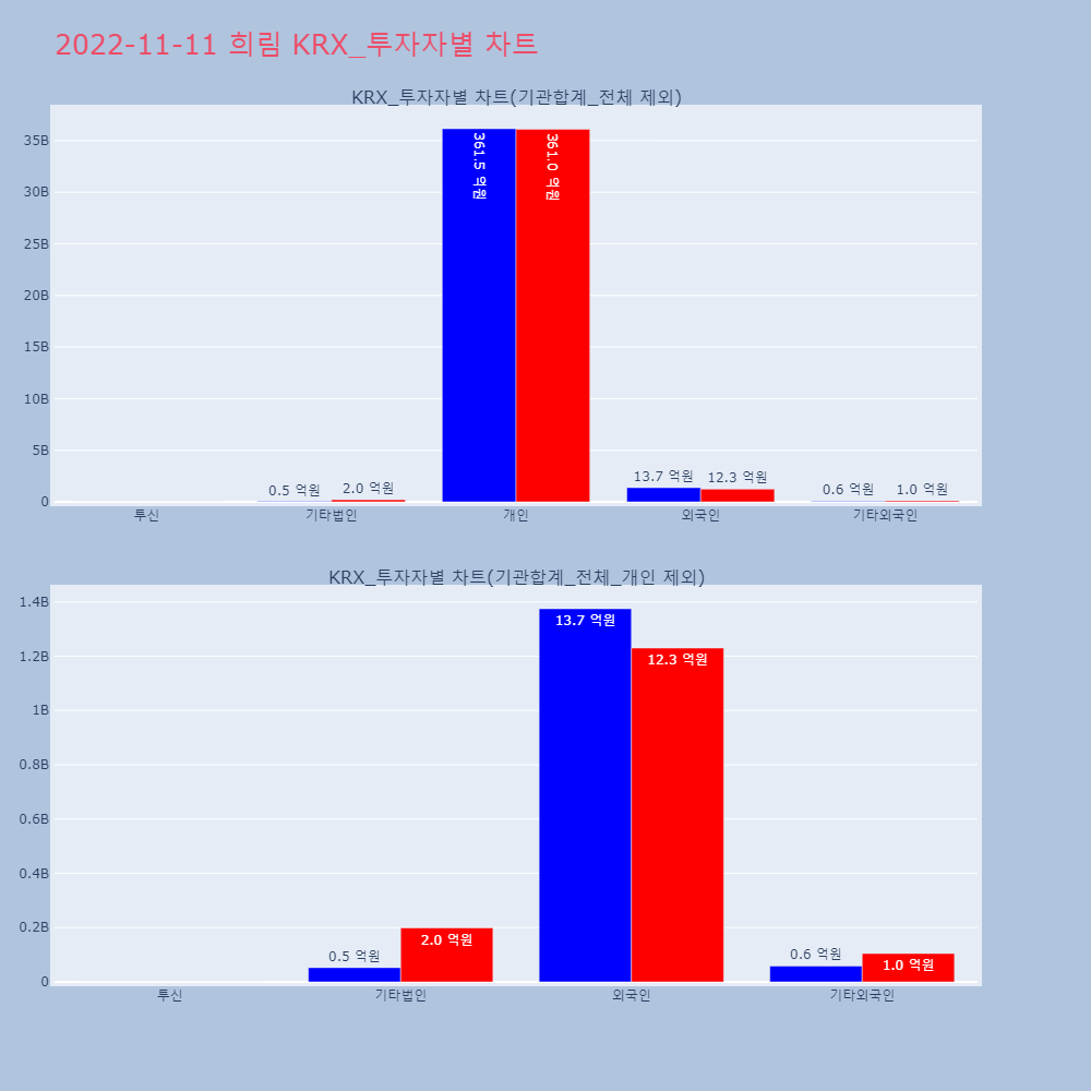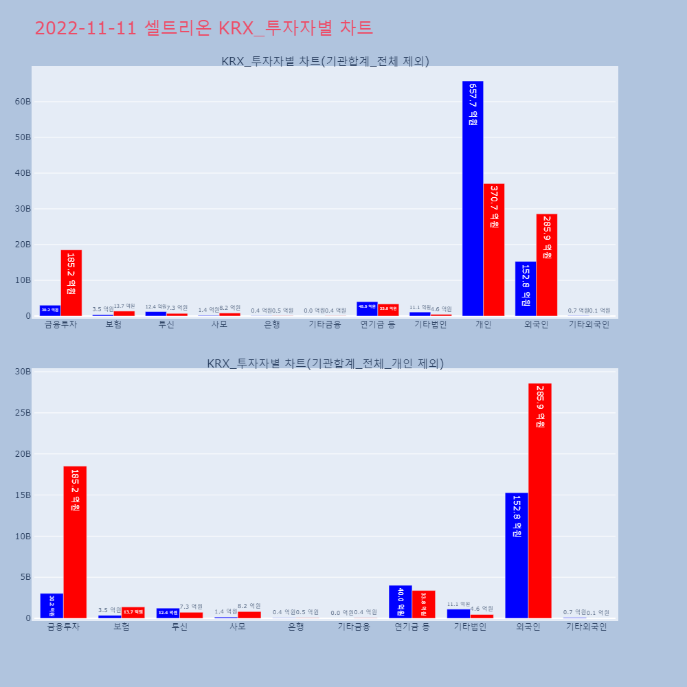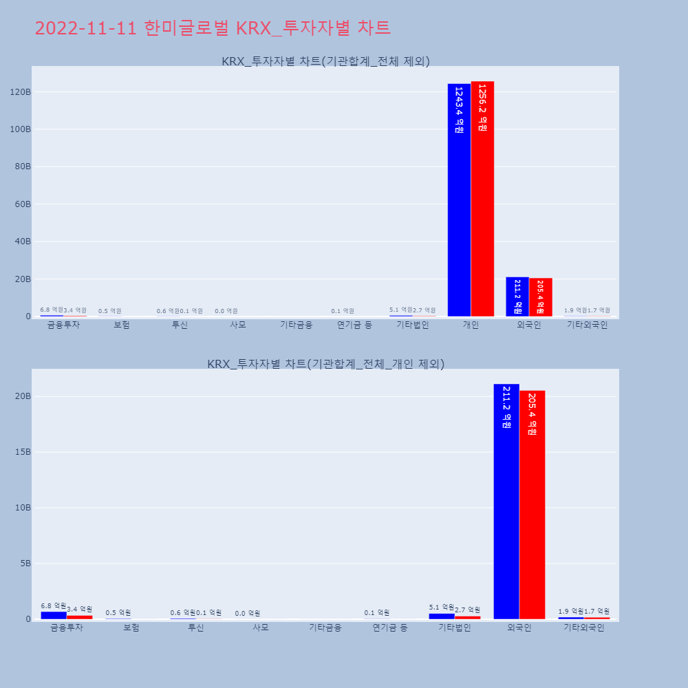 | 투자기관 | 거래량_매도 | 거래량_매수 | 거래량_순매수 | 거래대금_매도 | 거래대금_매수 | 거래대금_순매수 |