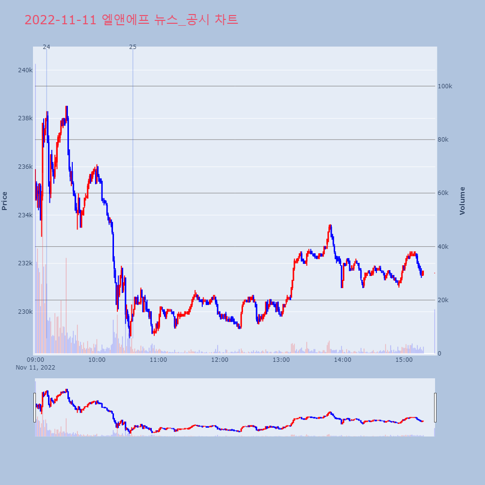 | 25 | [장중수급포착] 엘앤에프, 외국인/기관 동시 순매수… 주가 +4.99% [서울=뉴스핌] 로보뉴스 = 11일 10시 15분 현재 | 뉴스핌 | 엘앤에프 | 2022-11-11 10:35:12 |
