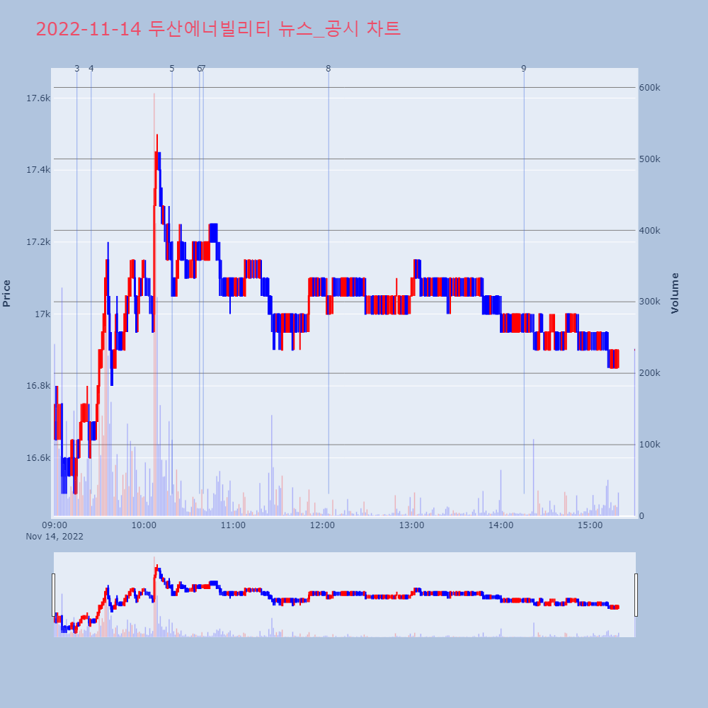 | 1 | "두산에너빌리티, 우크라이나 SMR 파일럿 프로젝트 참여" 두산에너빌리티가 우크라이나 에너지 안보 목표를 지원하기 | 파이낸셜 | 두산에너빌리티 | 2022-11-13 15:43:03 |