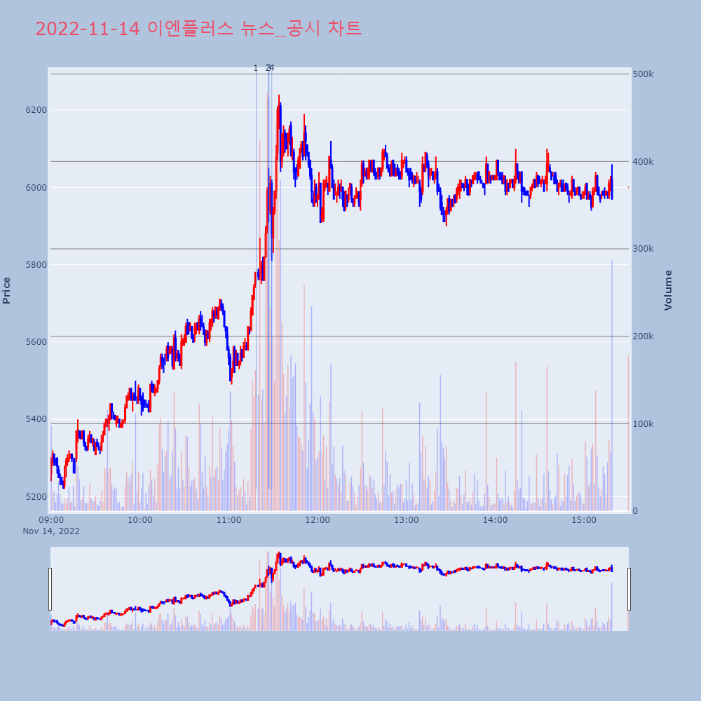 | 4 | '이엔플러스' 52주 신고가 경신, 단기·중기 이평선 정배열로 상승세◆ 차트 분석- 단기·중기 이평선 정배열로 상승세 | 한경/증권 | 이엔플러스 | 2022-11-14 11:29:05 |