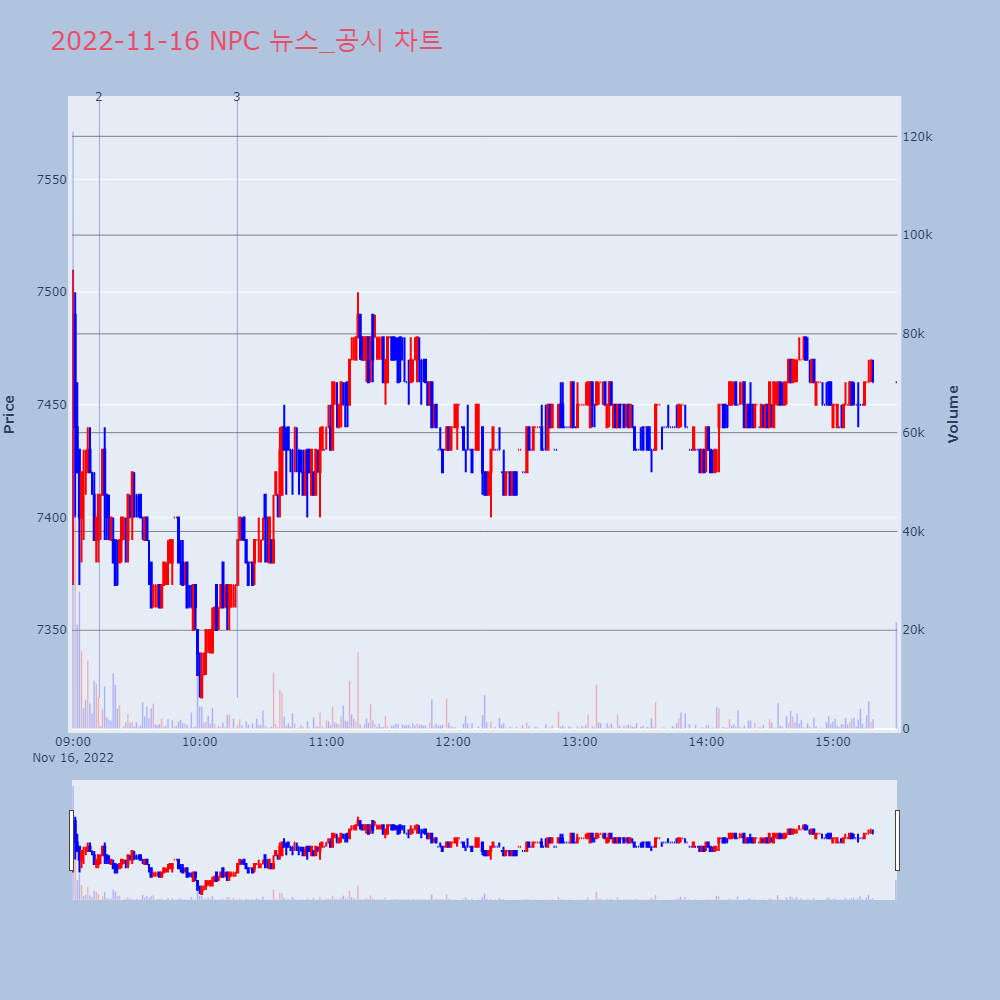 | 1 | NPC, 보통주 1,000,000주(74억원) 규모 자사주 취득 결정 제목 : NPC, 보통주 1,000,000주(74억원) | 인포스탁 | NPC | 2022-11-15 15:46:59 |