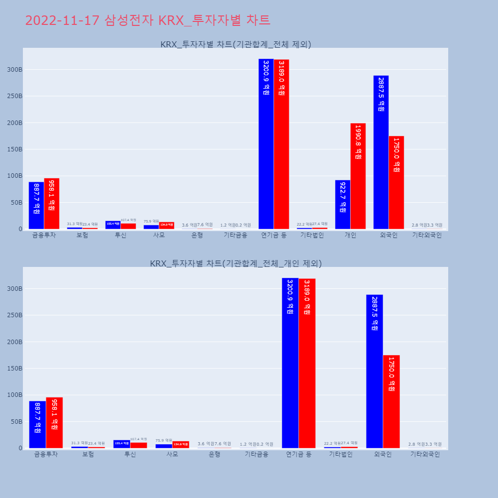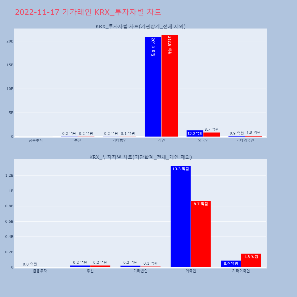 | 투자기관 | 거래량_매도 | 거래량_매수 | 거래량_순매수 | 거래대금_매도 | 거래대금_매수 | 거래대금_순매수 |