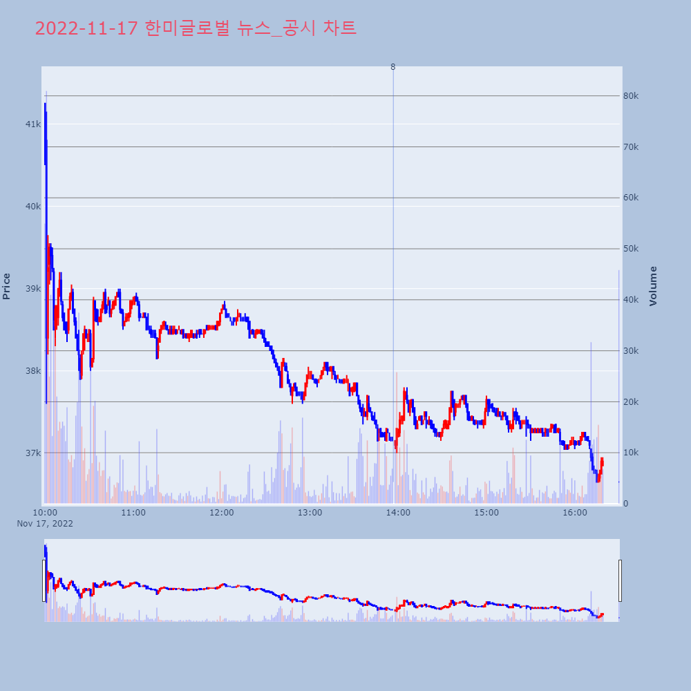 | 8 | 한미글로벌, -10.59% VI 발동한미글로벌이 VI가 발동했다. 전일 대비 10.59% | 조선경제 | 한미글로벌 | 2022-11-17 13:56:42 |