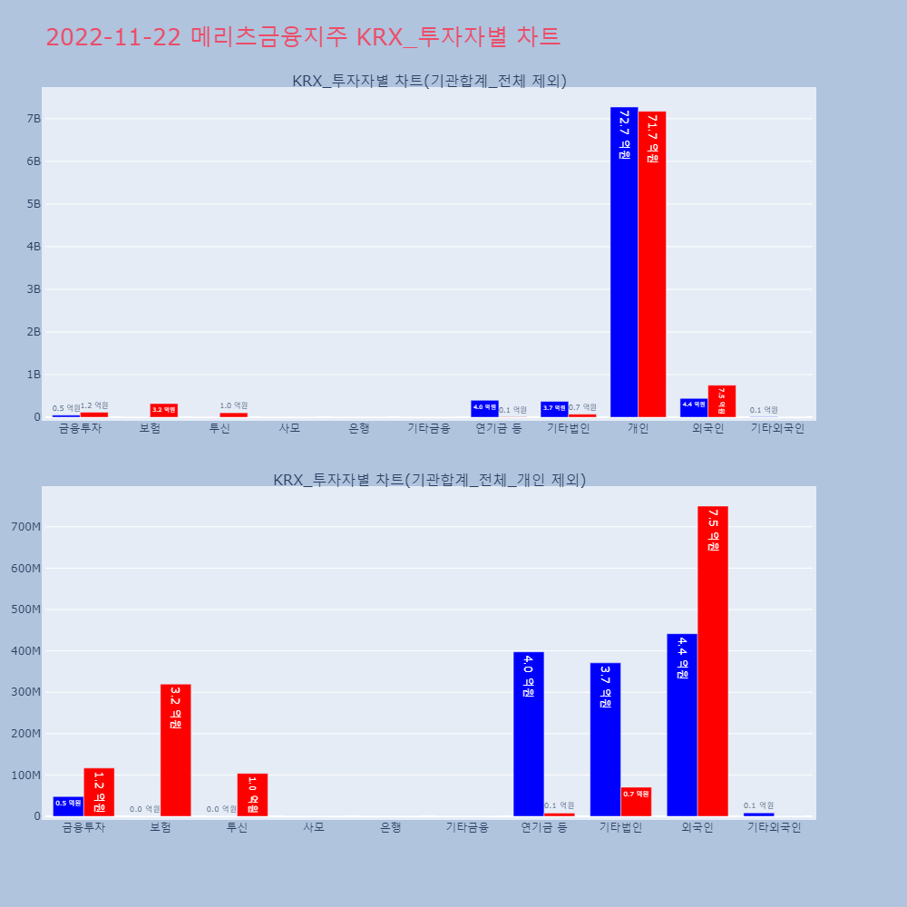 | 투자기관 | 거래량_매도 | 거래량_매수 | 거래량_순매수 | 거래대금_매도 | 거래대금_매수 | 거래대금_순매수 |