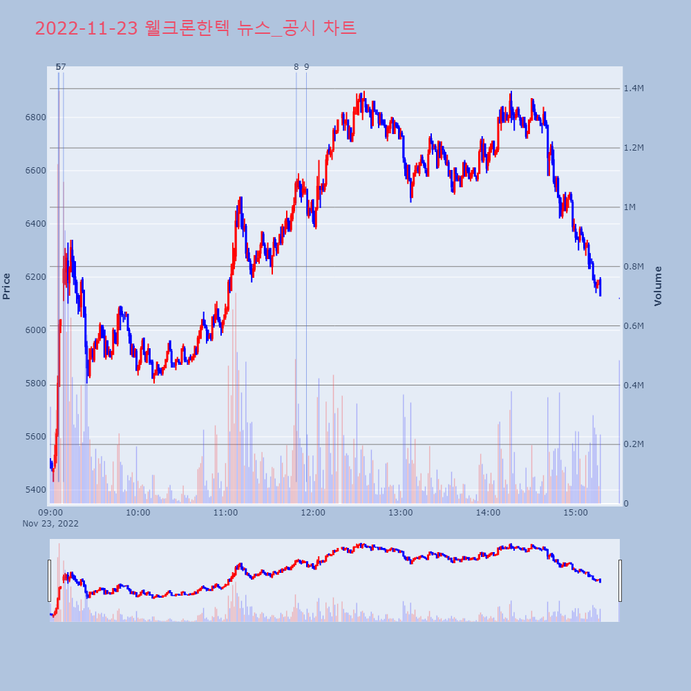 | 9 | [강세 토픽] 비철금속 - 리튬 테마, 웰크론한텍 +18.98%, 하이드로리튬 +11[비철금속 - 리튬] 테마가 강세다. 전일 대비 2.7 | 조선경제 | 웰크론한텍 | 2022-11-23 11:55:30 |