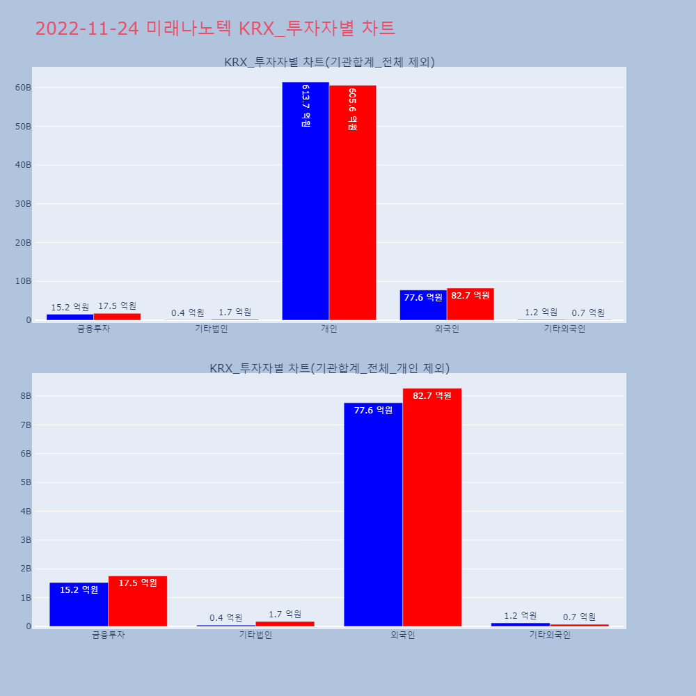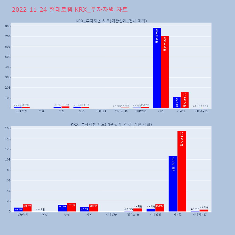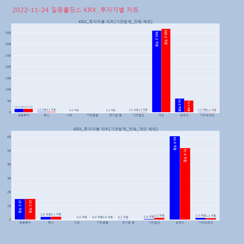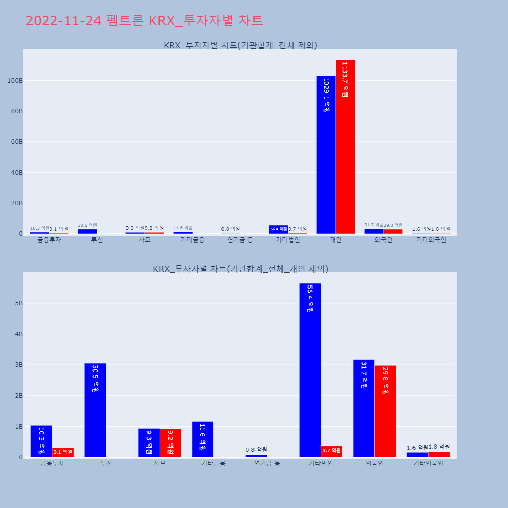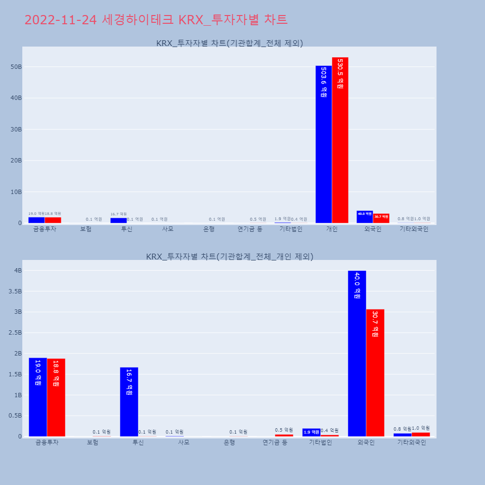 | 투자기관 | 거래량_매도 | 거래량_매수 | 거래량_순매수 | 거래대금_매도 | 거래대금_매수 | 거래대금_순매수 |