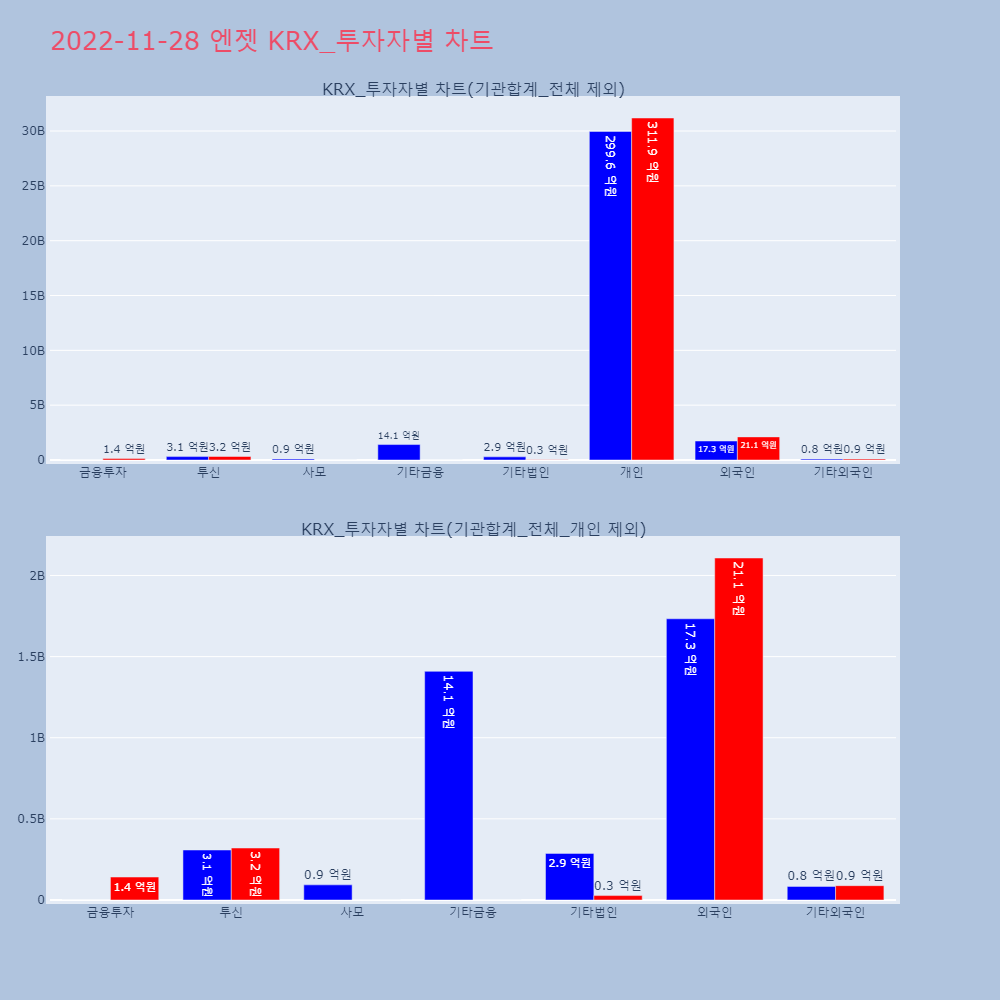 | 외국인 | 57,632 | 44,005 | -13,627 | 4,611,381,300 | 3,521,575,000 | -1,089,806,300 |