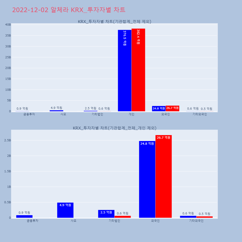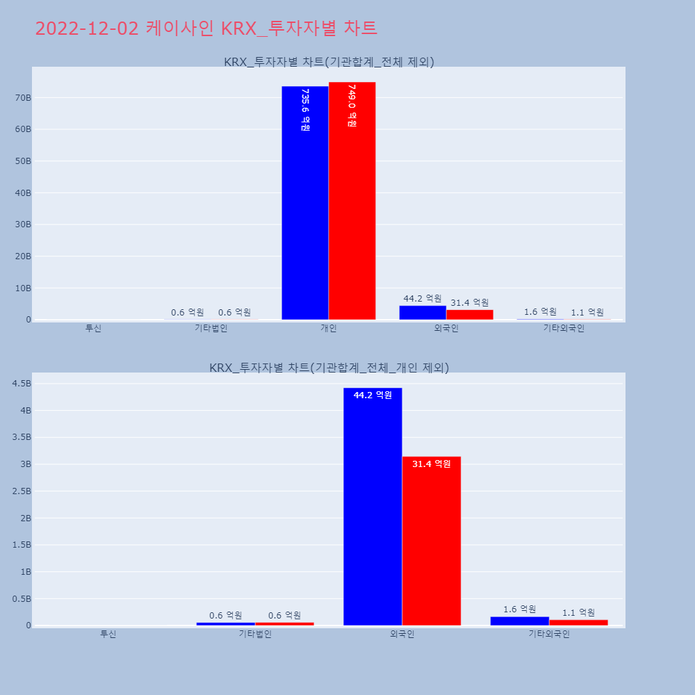 | 투자기관 | 거래량_매도 | 거래량_매수 | 거래량_순매수 | 거래대금_매도 | 거래대금_매수 | 거래대금_순매수 |