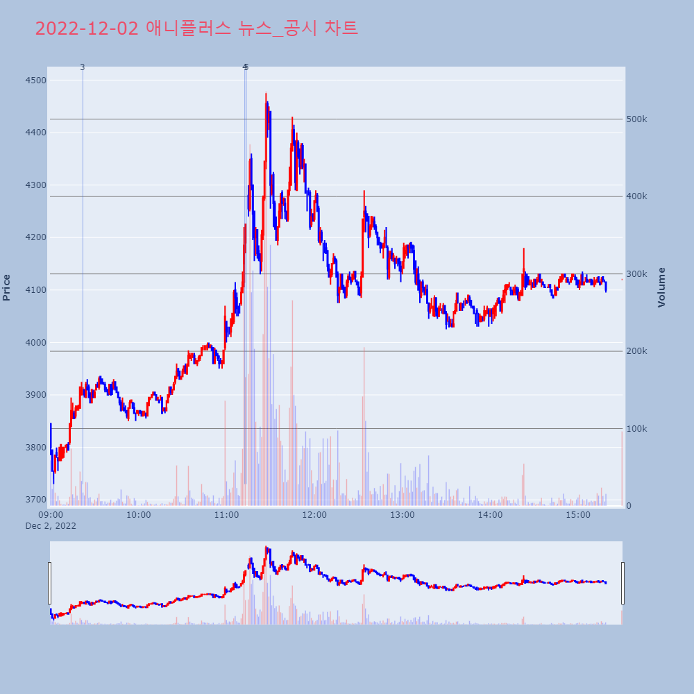 | 5 | 애니플러스, +11.18% VI 발동애니플러스가 VI가 발동했다. 전일 대비 11.18% | 조선경제 | 애니플러스 | 2022-12-02 11:13:32 |