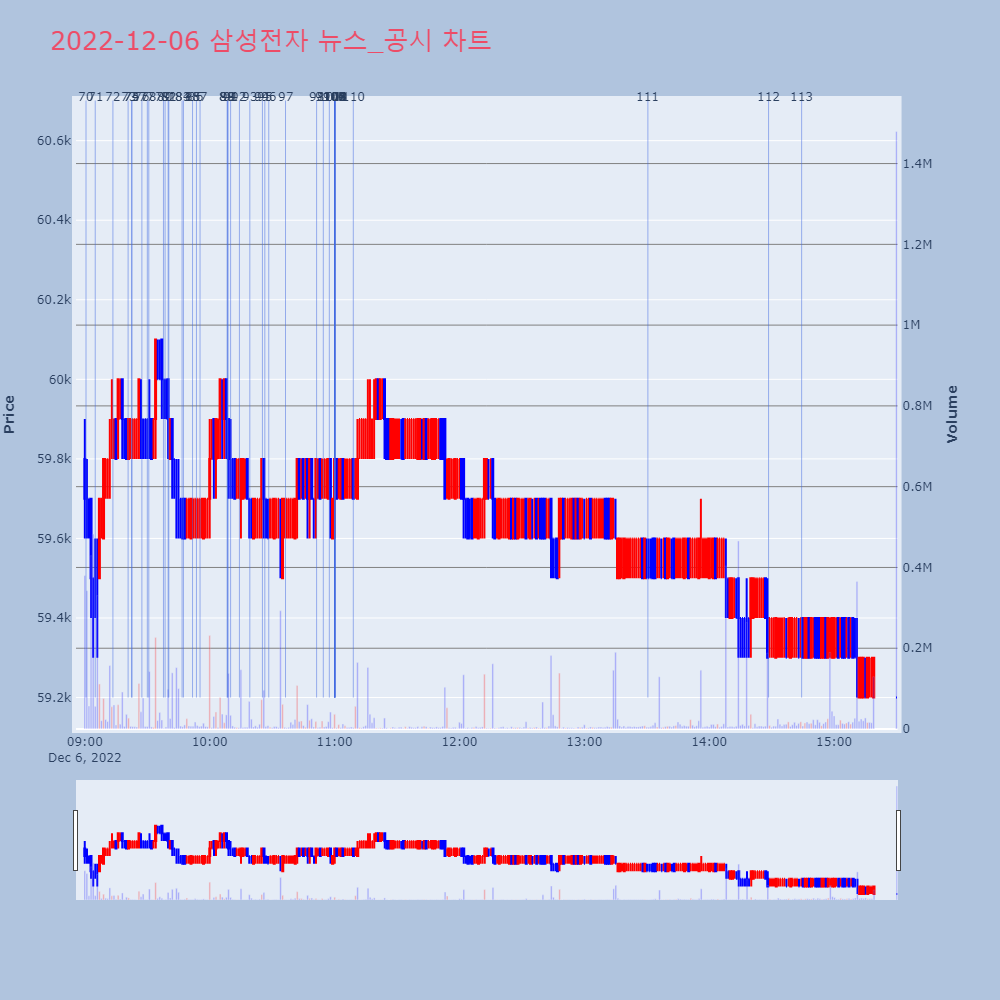 | 113 | [특징주] 삼성전자, 나스닥 지수 급락에 한 달 만 ‘6만전자’ 붕괴 제목 : [특징주] 삼성전자, 나스닥 지수 급락에 한 | 인포스탁 | 삼성전자 | 2022-12-06 14:44:25 |