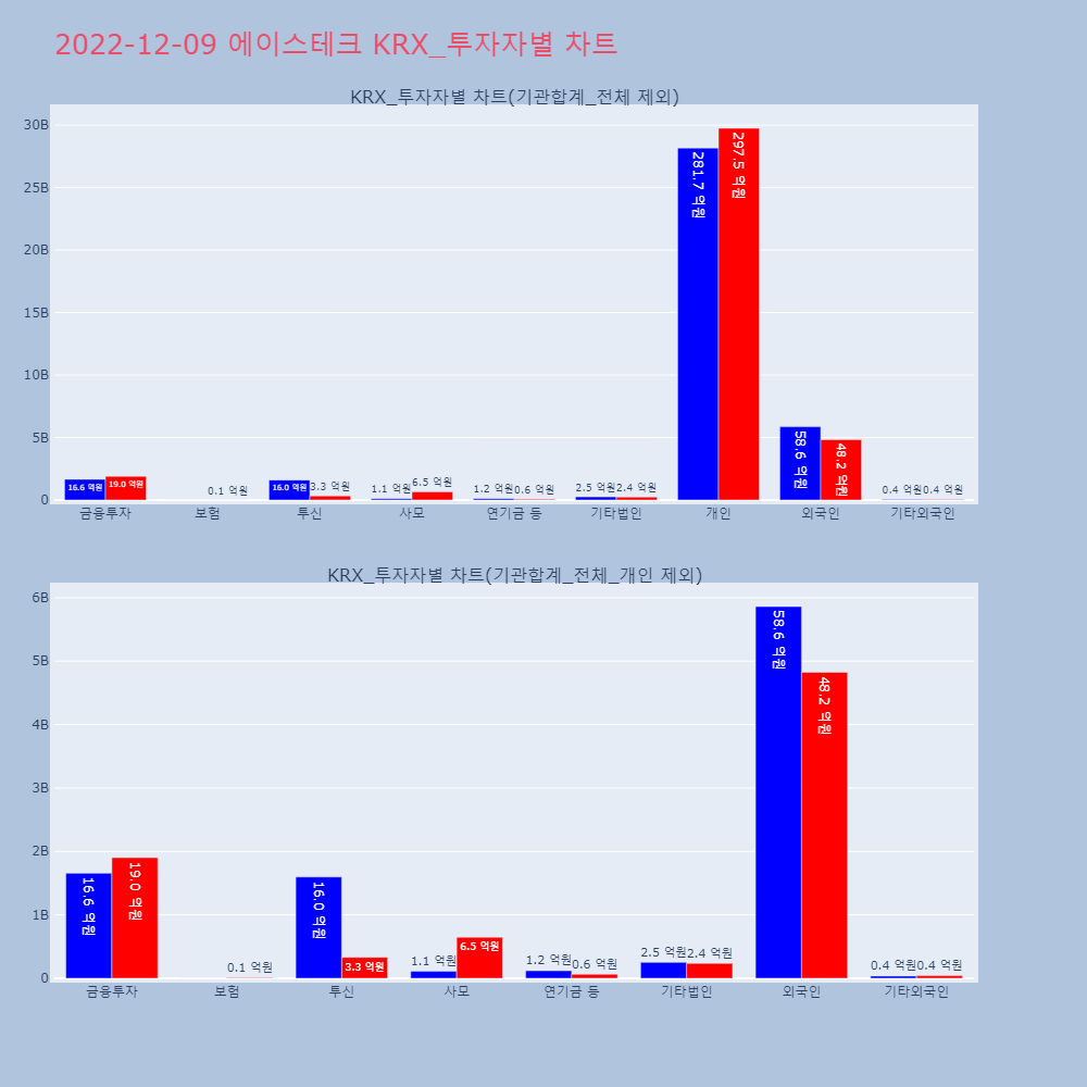 | 투자기관 | 거래량_매도 | 거래량_매수 | 거래량_순매수 | 거래대금_매도 | 거래대금_매수 | 거래대금_순매수 |