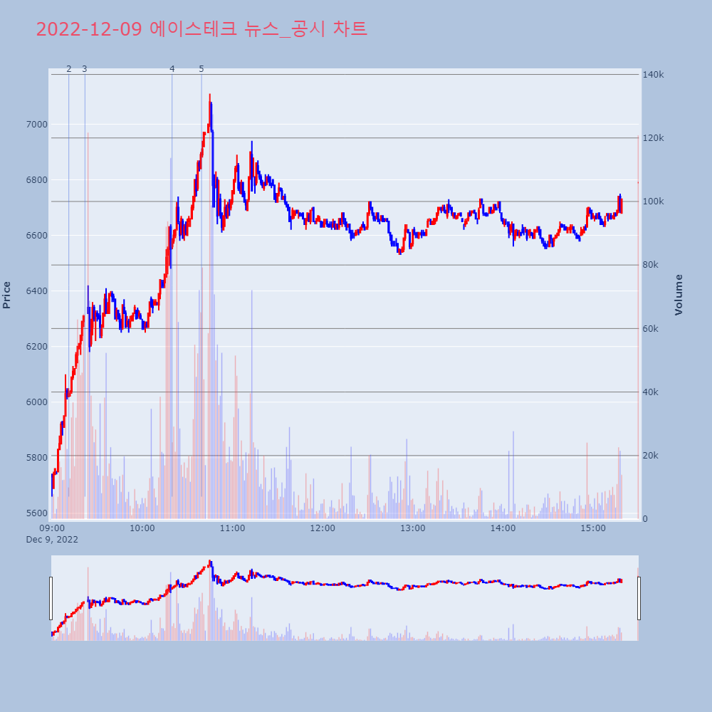 | 4 | [장중수급포착] 에이스테크, 외국인/기관 동시 순매수… 주가 +12.02% [서울=뉴스핌] 로보뉴스 = 09일 10시 15분 현재 | 뉴스핌 | 에이스테크 | 2022-12-09 10:19:54 |