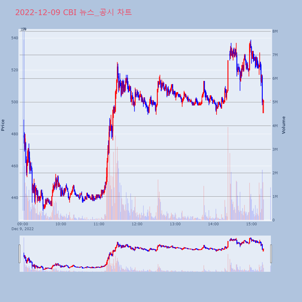 | 4 | CBI, +10.40% VI 발동CBI가 VI가 발동했다. 전일 대비 10.40% 상승 | 조선경제 | CBI | 2022-12-08 09:45:09 |