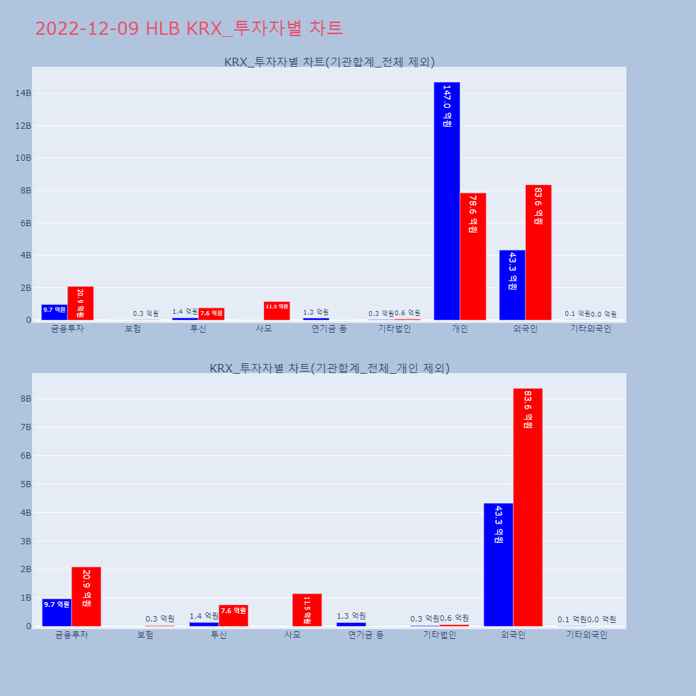 | 기관합계 | 17,636 | 8,706 | -8,930 | 323,993,500 | 160,206,100 | -163,787,400 |