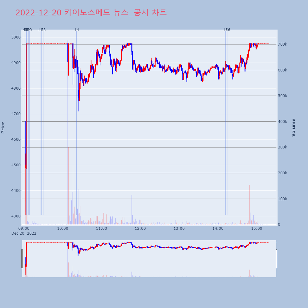 | 4 | 카이노스메드, 0.00% VI 발동카이노스메드가 VI가 발동했다. 현재 3,830원에 거 | 조선경제 | 카이노스메드 | 2022-12-20 09:00:20 |