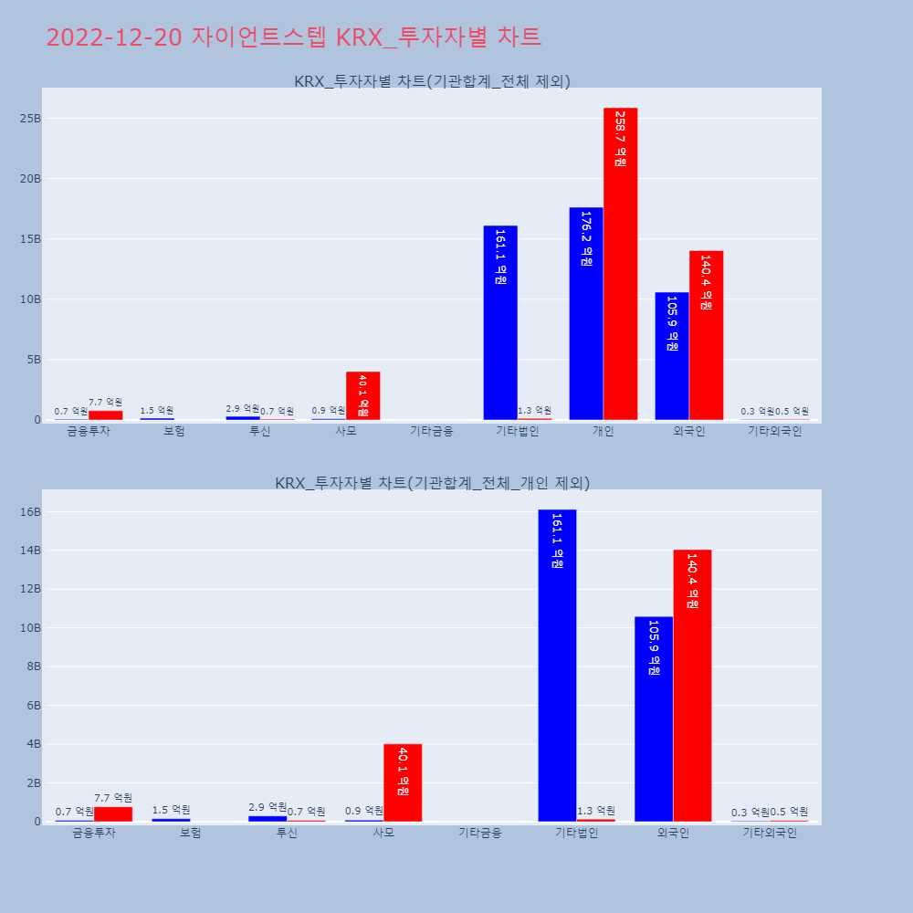 | 투자기관 | 거래량_매도 | 거래량_매수 | 거래량_순매수 | 거래대금_매도 | 거래대금_매수 | 거래대금_순매수 |