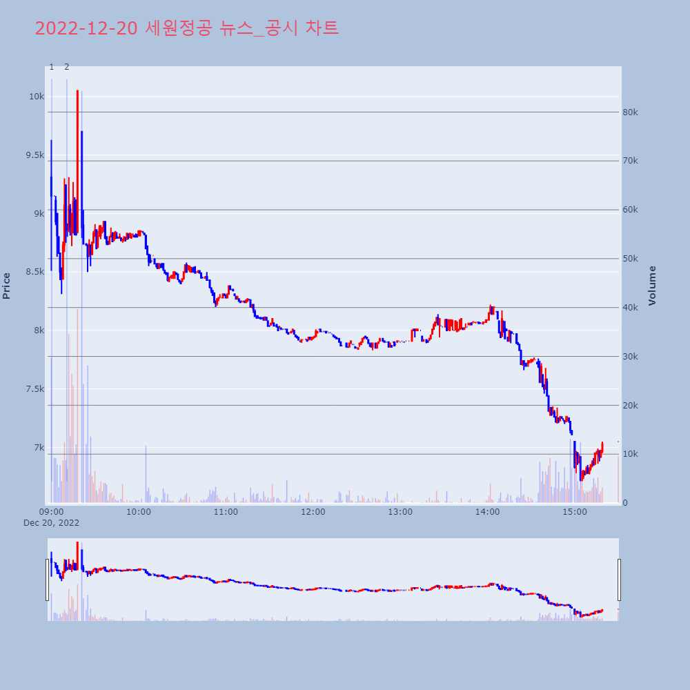 | 3 | [fnRASSI]장마감, 거래소 하락 종목(세원정공 -24.3% ↓) 20일 거래소 기준으로 하락한 종목은 세원정공(0218 | 파이낸셜 | DI동일 | 2022-12-20 15:39:58 |