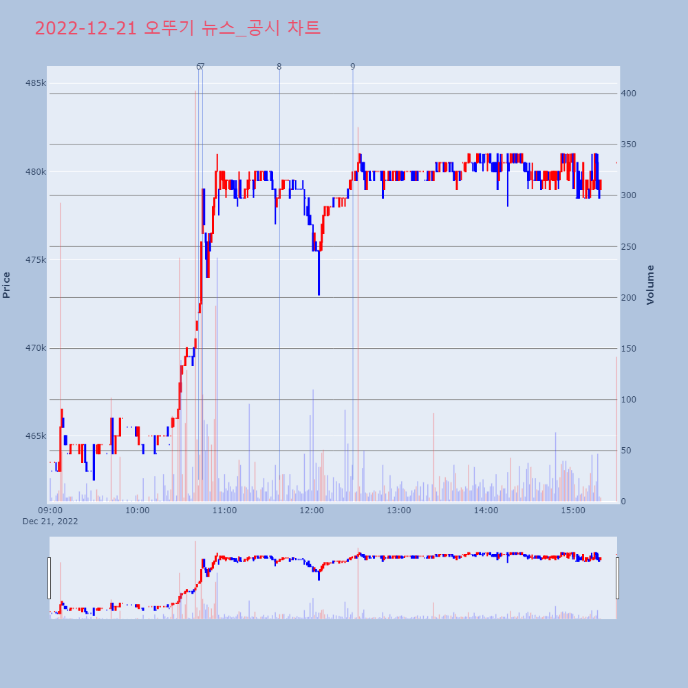 | 7 | [강세 토픽] 화재 테마, 한컴라이프케어 +5.24%, 오텍 +4.83%[화재] 테마가 강세다. 전일 대비 2.06% 상승세이 | 조선경제 | 한컴라이프케어 | 2022-12-21 12:31:27 |